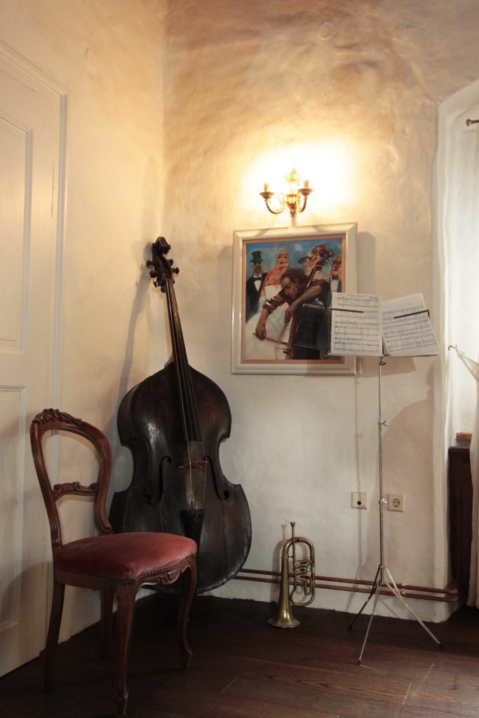 Z vsem spoštovanjem do spomenika kulturne dediščine se je lotil obnove. “Ti tramovi na stropu so originalni. V nekem obdobju je bilo moderno, da so strope ometali in pobelili. In ko sem ga začel restavrirat, sem to odstranil.” Apno je umival s cunjo in vodo – skrbno in počasi. “Kakšnih 300 ur sem porabil, da sem očistil strop in še z nožičkom popraskal bele delce. Potem sem ga premazal s čebeljim voskom. Zdaj znova žari v svoji prvobitnosti,” ponosno pove Edi.