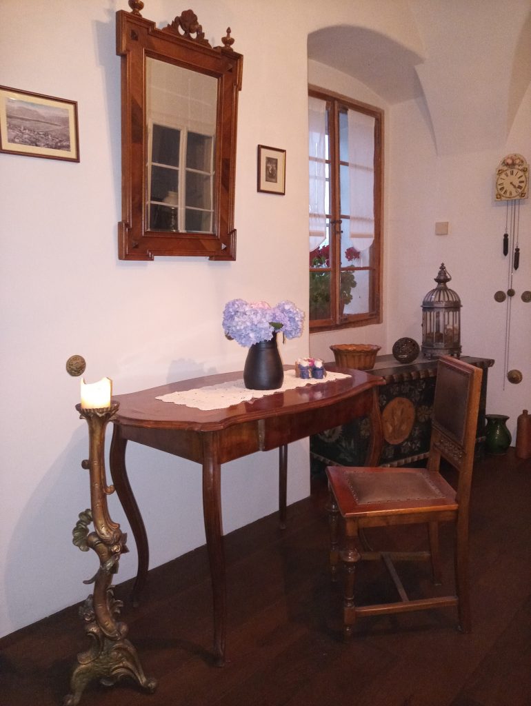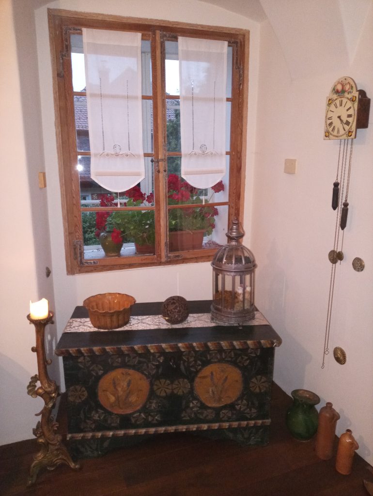 Pri dobrih prenovah je zaželeno, da namembnost bivalnih stavb približamo današnjim standardom, tako je lastnik v hiši poskrbel za vodovod, ogrevanje s centralno pečjo na pelete, sanitarni prostor. A živi ogenj je zanj silno dragocen. Toplino plamenov domu podarjata obnovljena lončena peč v bivalnem prostoru in litoželezna peč v kuhinji. Pohištva v stavbi ni bilo. Zato je Edi kakor skrbni zbiratelj nabral posamezne kose, ki izpričujejo zgodbe preteklosti, in jih preudarno umestil v svoj dom.