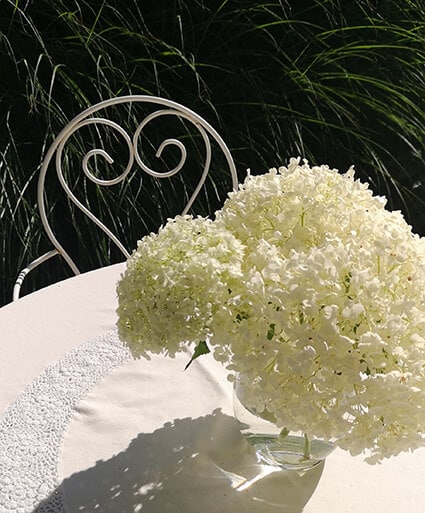 Zanimiv recept, kako do lepega rožnega vrta, pa nam je zaupala tudi Mojca Kranjc, ki ima vrt na Dolenjskem in smo ga predstavili tule. Mojca pravi, da je skrivnost v načrtu, dobri predstavi in predvsem v postopnosti. »Kot prvo sem zasadila vrtnico vzpenjavko New Dawn, ki me je očarala s svojo preprostostjo, nežno nevsiljivostjo in prijetnim vonjem. Med lepšimi so poleg sorte New Dawn tudi Eden Rose, ki je silno romantična sorta, pa Pomponela, ki je izredno zdrava in cveti od začetka junija do prve pozebe, cvetove pa ima v obliki žogic. Navdihujoča je tudi vrtnica Lovely Green z zelenkastimi cvetovi …« našteva in dodaja, da je vrtnice najlepše opazovati od blizu, da jih tudi vohamo, zato je po vrtu razporedila več kovinskih mizic in stolov, ki vabijo v pomirjajoče okolje k sprostitvi, pitju kave, druženju …