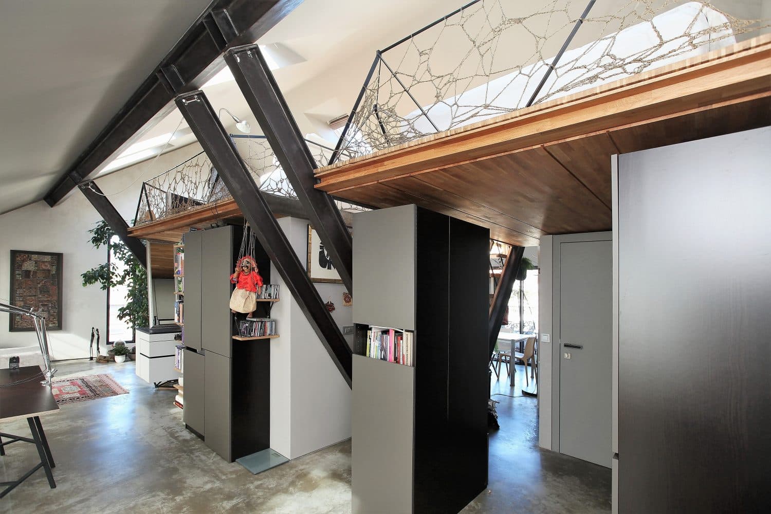 Ta mansarda je zasnovana točno tako, kot bi zanjo nekdo izrekel najbolj učinkovite uroke za urejanje sodobne mansarde: ima prostor, odprt do slemena, veliko naravne dnevne svetlobe, izjemno prostornost in vidno konstrukcijo. Seveda ne gre za nobeno čarovnijo, gre pa za trike, ki so realni, odlično zamišljeni in zmeraj delujejo.