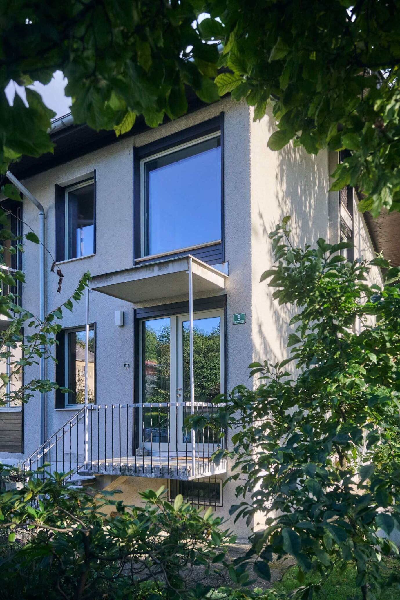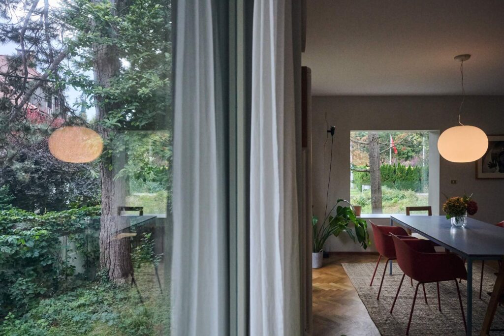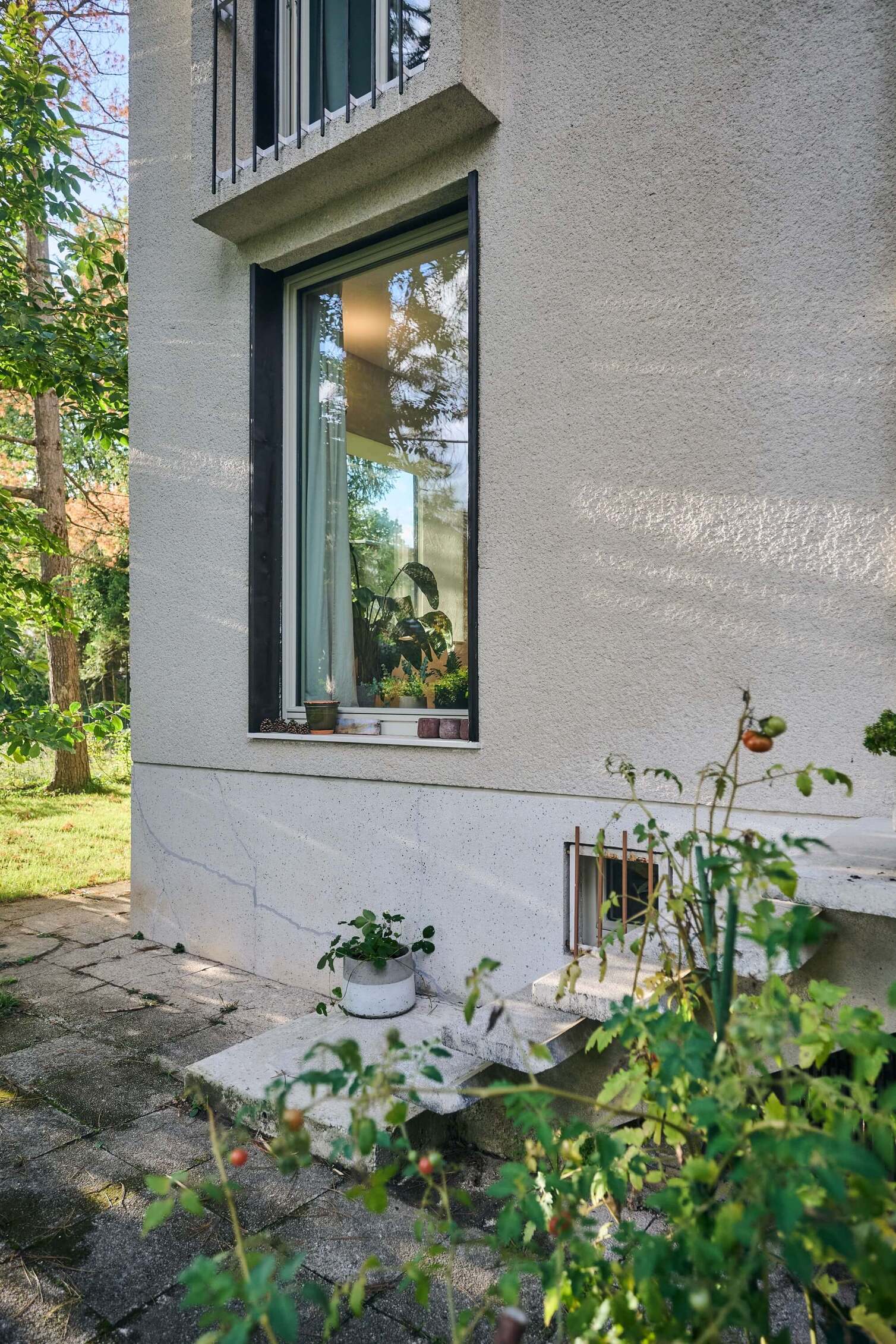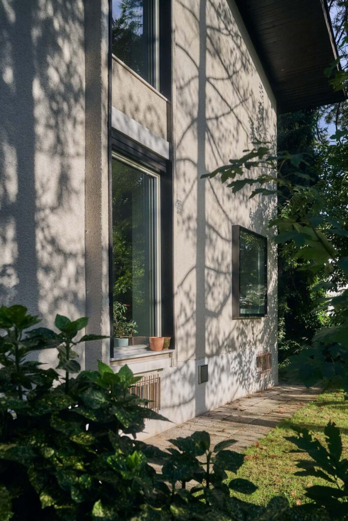 Marsikaj sta arhitekta obnovila in osvežila lastnoročno, na primer stopnice iz teraca, ki so bile prekrite z oblogami, in izvirno oblikovano kovinsko ograjo stopnišče. Med pomembnimi izhodišči prenove za arhitekta je bila tudi vloga svetlobe in senc, zaradi visokih okoliških dreves in različno usmerjenih oken. Prav novo okno v jedilnici je edini večji poseg v konstrukcijo, ker je bila v njej samo južna svetloba. Okno malce štrli iz pročelja, kot poudarjena novost, znotraj pa ponuja udobno poličko, s katere domači opazujejo del vrta in veverice na okoliških drevesih.