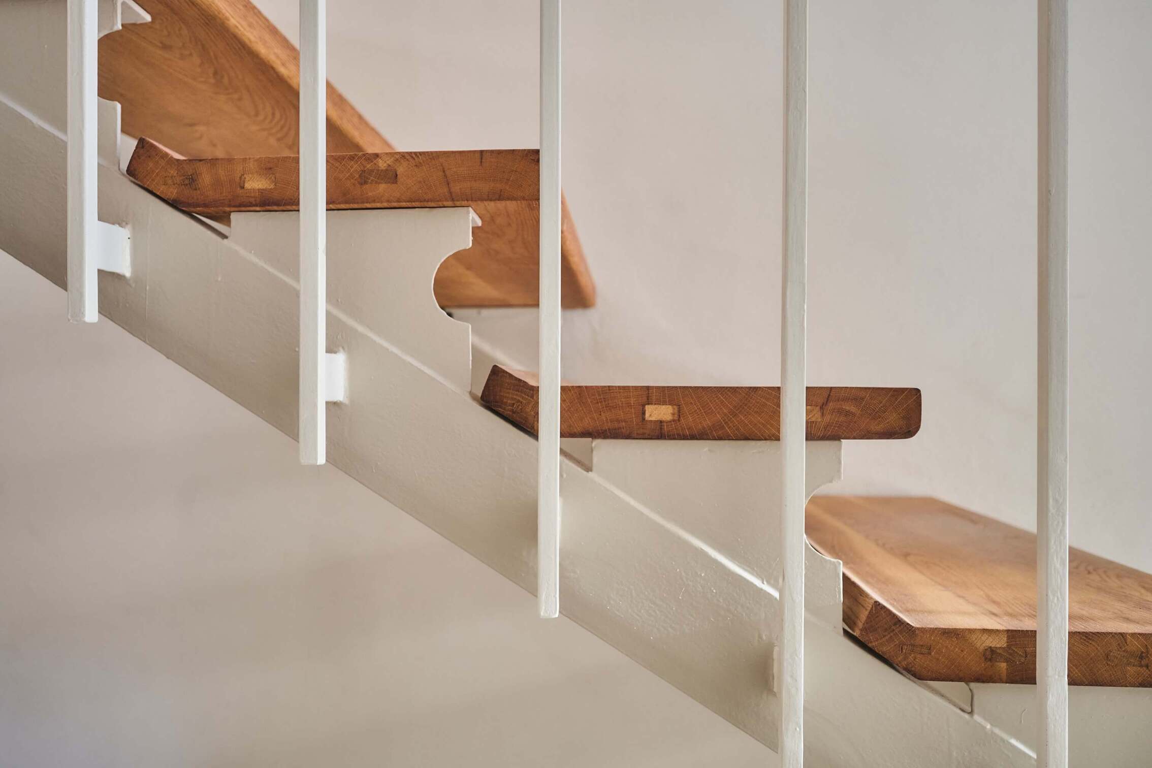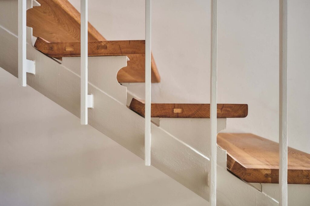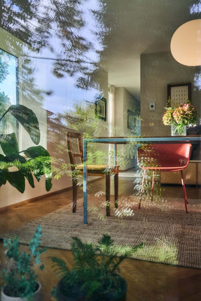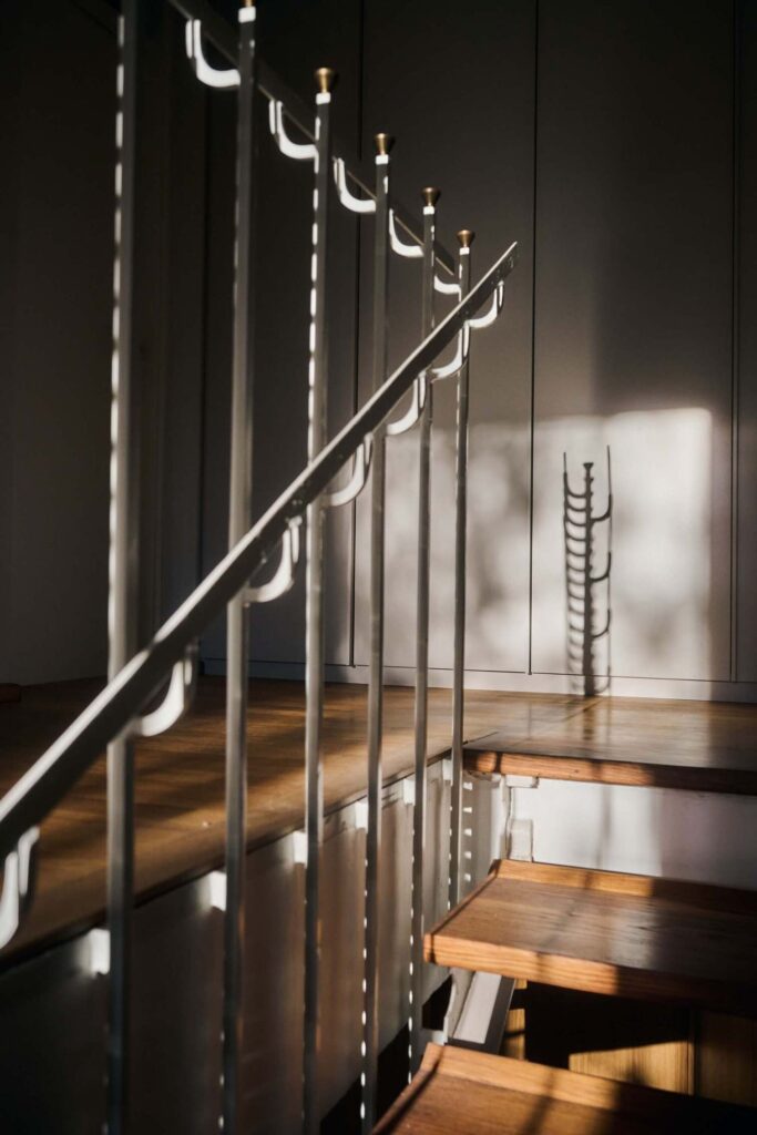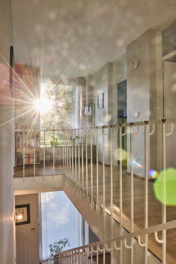 Marsikaj sta arhitekta obnovila in osvežila lastnoročno, na primer stopnice iz teraca, ki so bile prekrite z oblogami, in izvirno oblikovano kovinsko ograjo stopnišče. Med pomembnimi izhodišči prenove za arhitekta je bila tudi vloga svetlobe in senc, zaradi visokih okoliških dreves in različno usmerjenih oken. Prav novo okno v jedilnici je edini večji poseg v konstrukcijo, ker je bila v njej samo južna svetloba. Okno malce štrli iz pročelja, kot poudarjena novost, znotraj pa ponuja udobno poličko, s katere domači opazujejo del vrta in veverice na okoliških drevesih.