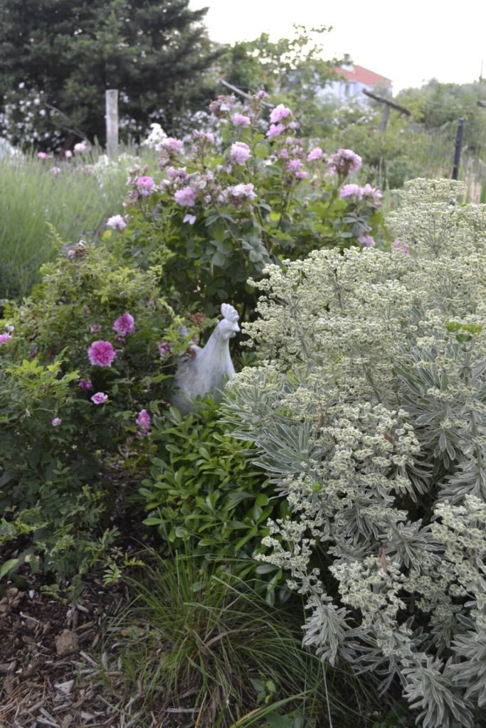 Da vrt ostaja zanimiv in zelen tudi v hladnem delu leta, so posadili številne vednozelene grme, kot so lepljivci, rožmarin, avkuba in trdoleske.
