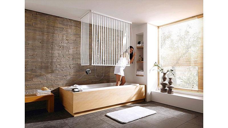 Kdo ne potrebuje več prostora v kopalnici? Kopalniška zavesa je odlična izbira, če ne želite vgraditi tuš kabine ali zanjo celo nimate prostora. Zaveso lahko v času neuporabe povsem potisnete na stran in tako ustvarite občutek večje kopalnice.