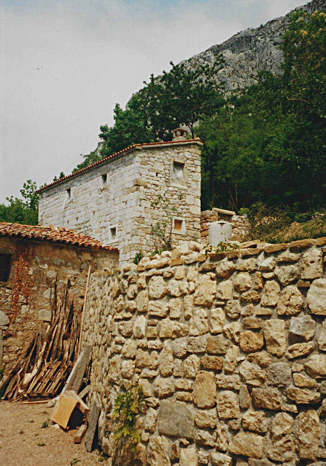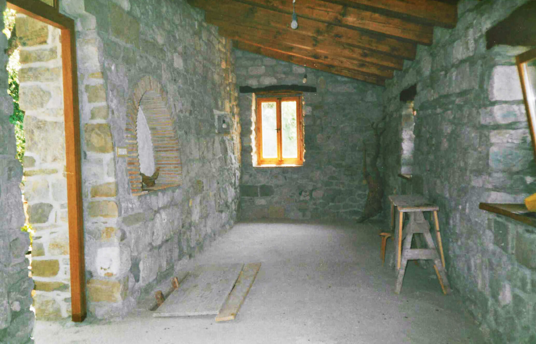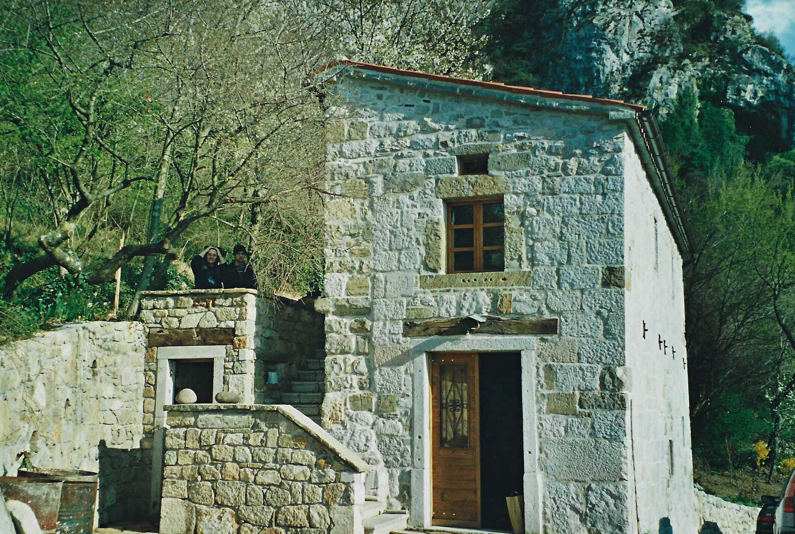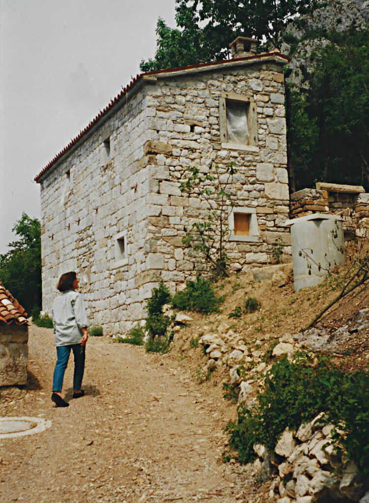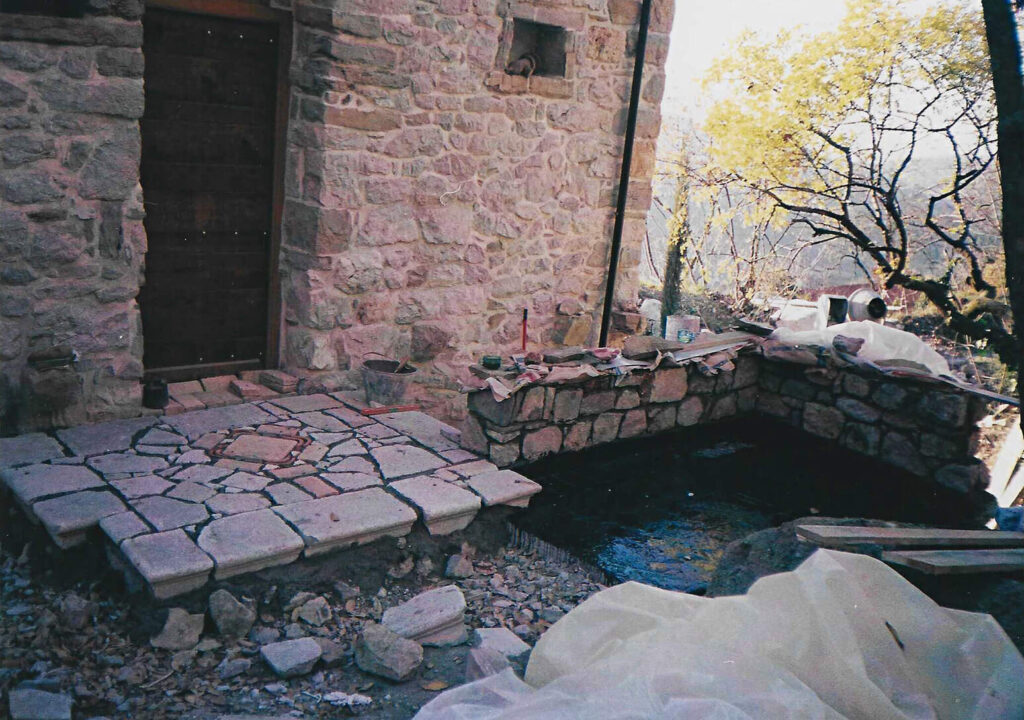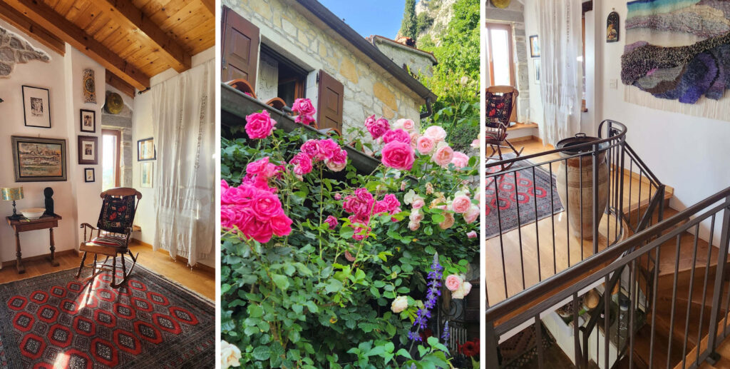 Hiši stojita na pobočju pod strmo steno, druga nad drugo. Gornja hiša je bila nekoč kovačija, danes pa nudi prenočišče popotnikom. Nižje ležeča hiša je bila sprva namenjena počitku ob koncu tedna, čeprav pravega počitka Neva in Alfio nista nikoli imela. Morala sta postaviti številne oporne zidove, na terasah je Neva uredila čudovite okrasne zasaditve. Tudi notranjost hiš je nikoli dokončana zgodba.