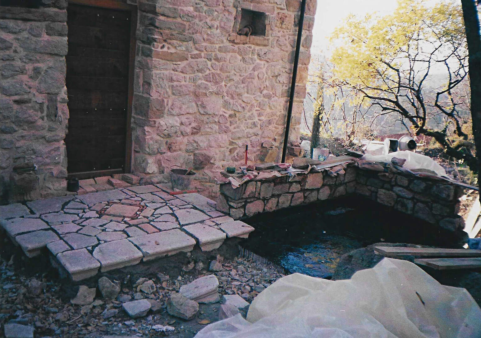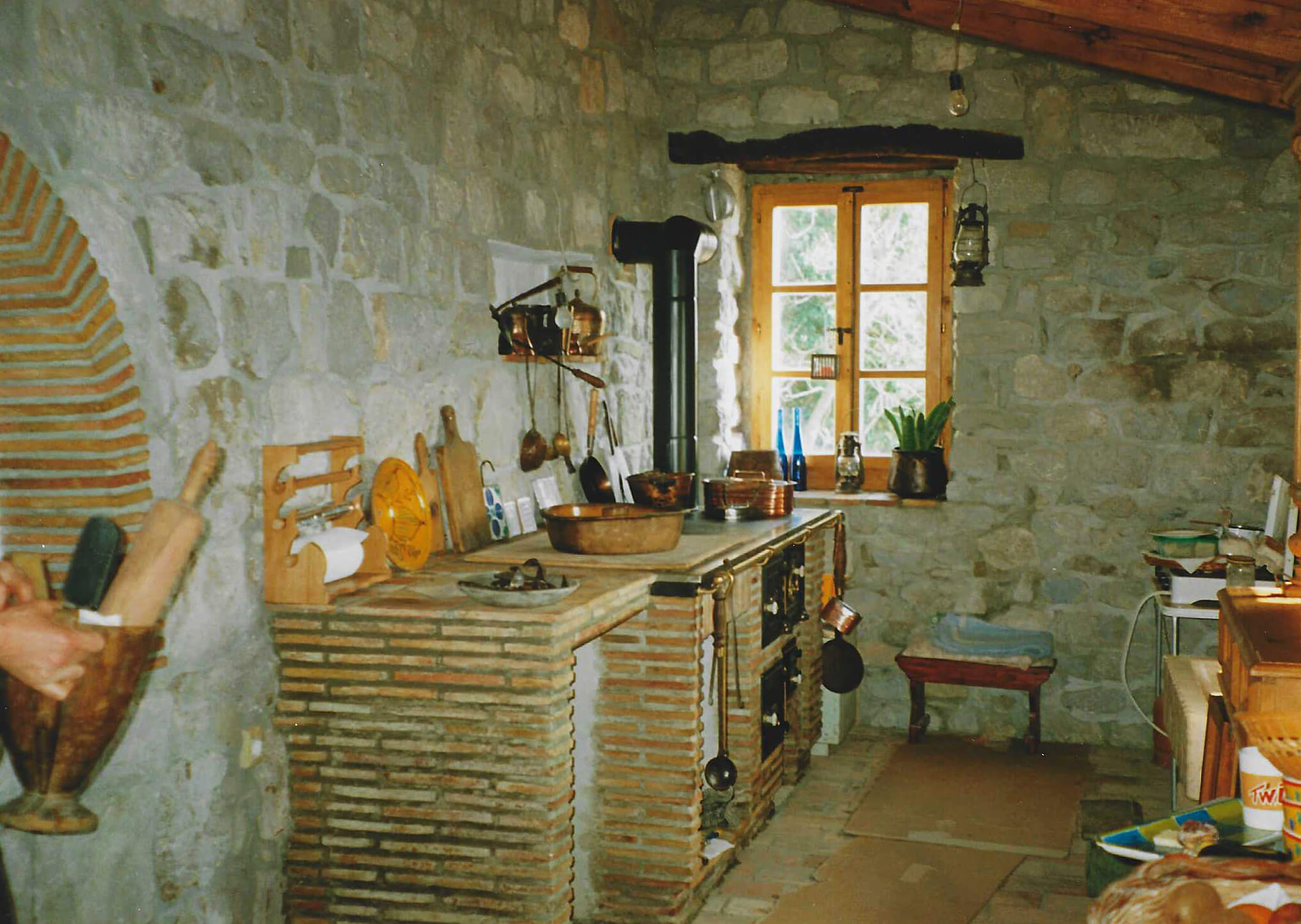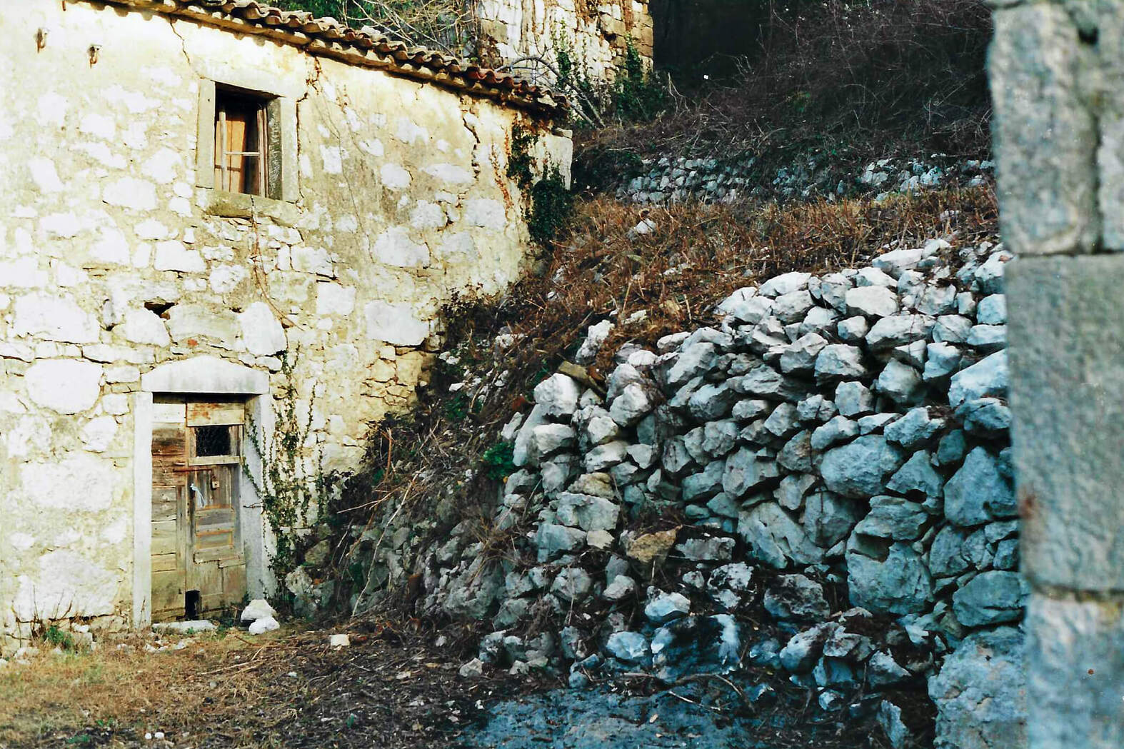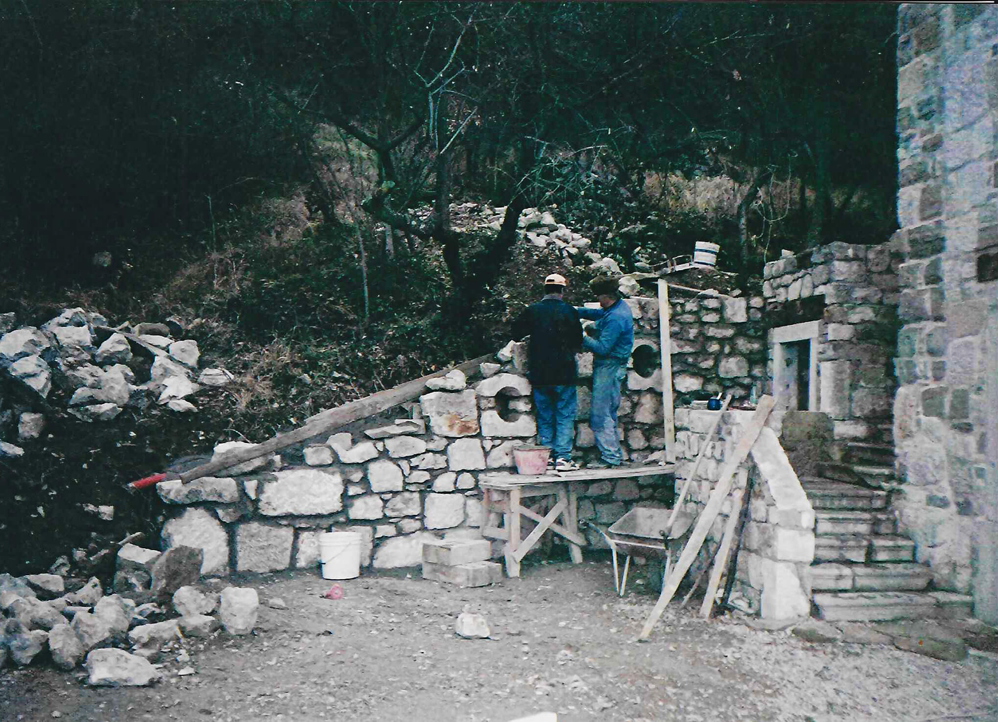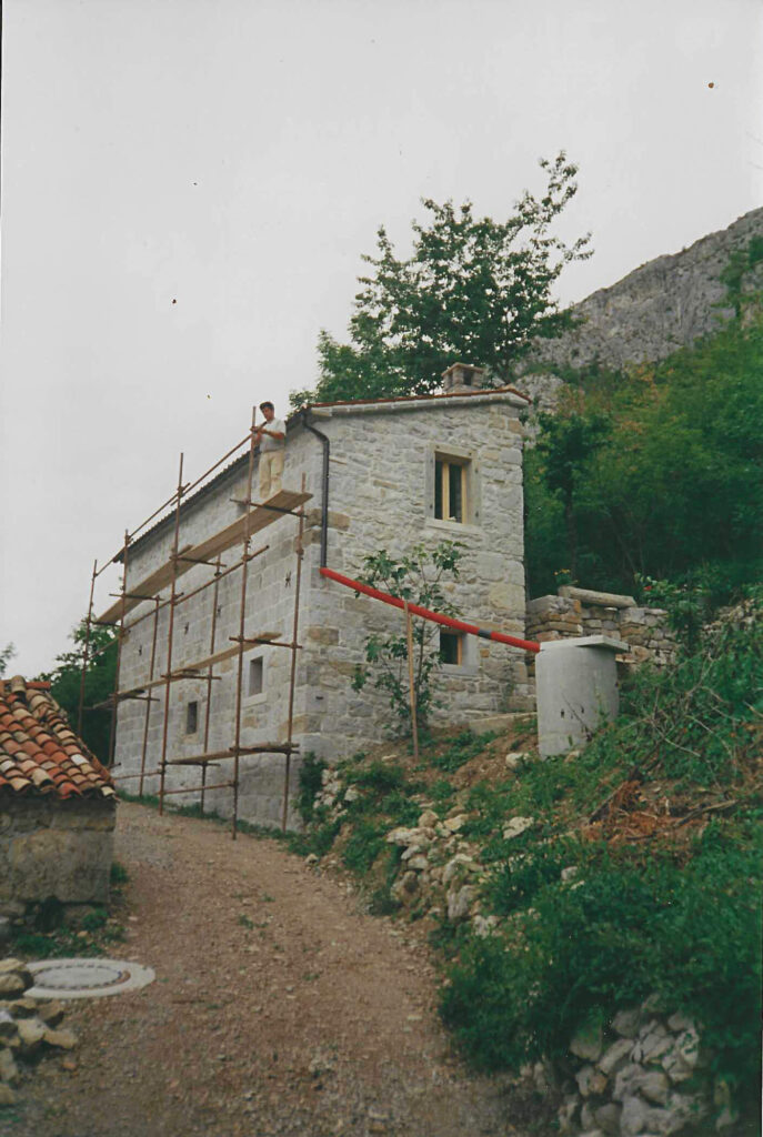 Hiši stojita na pobočju pod strmo steno, druga nad drugo. Gornja hiša je bila nekoč kovačija, danes pa nudi prenočišče popotnikom. Nižje ležeča hiša je bila sprva namenjena počitku ob koncu tedna, čeprav pravega počitka Neva in Alfio nista nikoli imela. Morala sta postaviti številne oporne zidove, na terasah je Neva uredila čudovite okrasne zasaditve. Tudi notranjost hiš je nikoli dokončana zgodba.