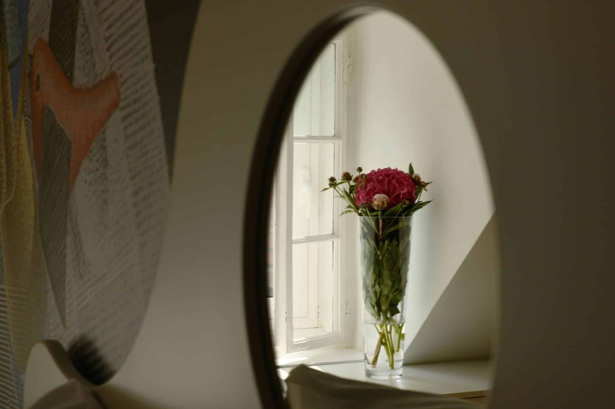 Ana je tudi tokrat – kot ji je v navadi – izhajala iz zgodovine stavbe. “Hiše, ki so starejše od mene in bodo živele še generacije dlje kot jaz, so objekti, ki jih obravnavam s spoštovanjem,” začne pogovor z nami. Zaradi častitljive starosti se je moral investitor prilagoditi objektu, in ne obratno, kot je v navadi. Vsi posegi so bili izvedeni precizno in premišljeno. “Najprej sem funkcionalno prerešetala tloris, da bi lahko maksimalno izkoristila bivanje v njem.” Dodala je galerijo z dodatno spalnico, premaknila vodne inštalacije za novo pozicijo kuhinje in uredila dve kopalnici. V spalnem in dnevnem prostoru je izpostavila izhoda na francoska balkona, ki nudita nepozaben razgled na staro Ljubljano: na strehe, nebo in ptice. Razgled je v Ani sprožil asociacijo: “Spomnila sem se slikarke, ki je ilustrirala Pepelko; ilustracij starih meščanskih hiš in ptic, ki letijo med njimi; deklice, ki v rokah drži gnezdo.” Ana je avtorico ilustracij, Alenko Sottler, povabila k sodelovanju.