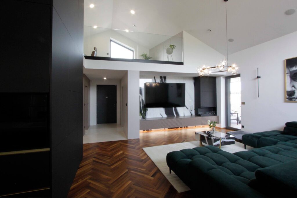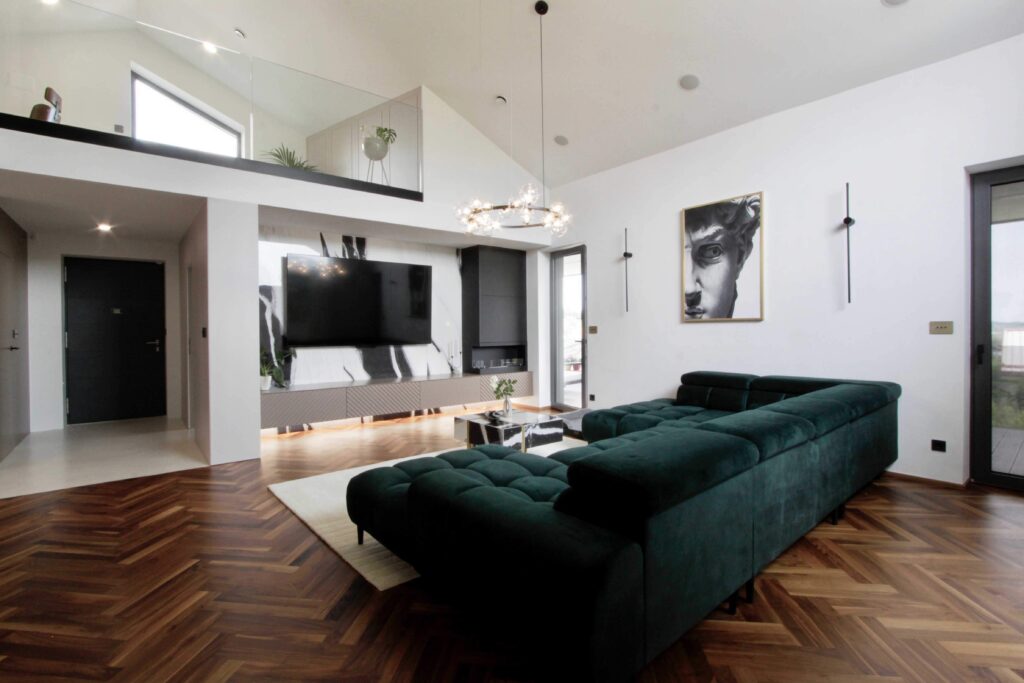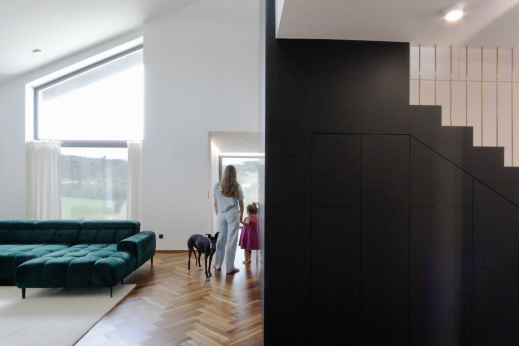 To ni le zgodba o prenovljenem domovanju, temveč o družinski povezanosti, arhitekturni drznosti in inovativnih rešitvah, ki so oblikovale udobno in privlačno družinsko hišo. Lastnika Zlatka in Denis Trinkaus sta skupaj z arhitektom Matjažem Rožcem in lokalnimi obrtniki iz bližnje okolice ustvarila dom, ki je navzven trden in mogočen, znotraj pa razkošen, topel in skorajda brezčasen. Velika okna, zasenčena s screen senčili podjetja Senčila Medle, stanovalcem ponujajo razgled na urejeno okolico, naravna svetloba pa umirjeno prehaja v notranjost ter razvaja tako mlado družino v nadstropju kot babico in dedka v pritličju. A pojdimo lepo na začetek …