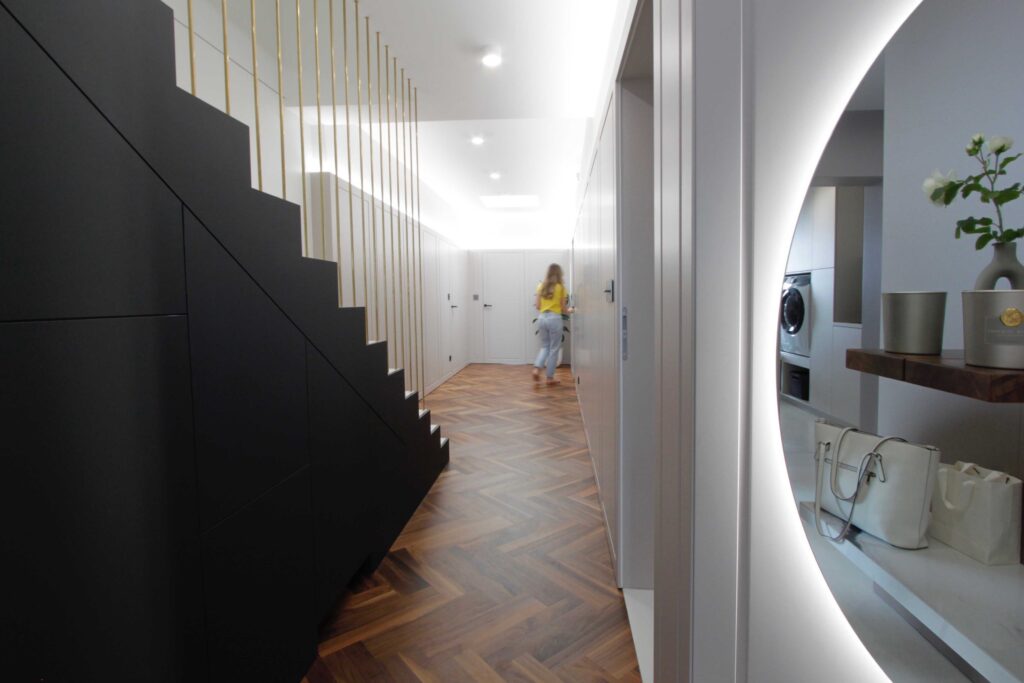 Pametne inštalacije dodatno olajšajo življenje: senčila se samodejno prilagajajo svetlobi in temperaturi, prezračevanje in klimatska naprava pa delujeta usklajeno. Kuhinja navdušuje z brezročajno pečico, senzorsko pipo in pametnim hladilnikom, ki odražajo sodoben pogled na svet. »Kuha še vedno žena,« se pošali Denis, ki rad poudari, da sta tudi njegova starša, ki živita v prenovljenem pritličju, navdušena nad preobrazbo. Celotna družina zdaj uživa v čudovitem domu, kjer imata babica in dedek vnuke vedno blizu, kar hišo napolnjuje z veseljem in krepi vezi med tremi generacijami.
