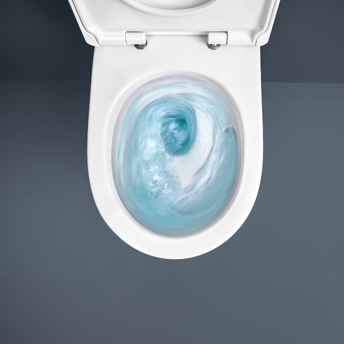 Temeljito splakovanje in čiščenje stranišča zahteva ne le vodo, temveč tudi pravo silo in nadzor nad vodo: ta mora pod pritiskom teči iz splakovalnika v straniščno školjko in biti usmerjena skozi školjko na ciljan način, da se temeljito in čisto splakne. Zmogljivost splakovanja straniščnega sistema Geberit je do desetkrat boljša od zahtev mednarodnih standardov. To omogoča medsebojno delovanje TurboFlush tehnologije, brezrobne keramične straniščne školjke in splakovalnega ventila tip 212 z optimizirano hidravliko.