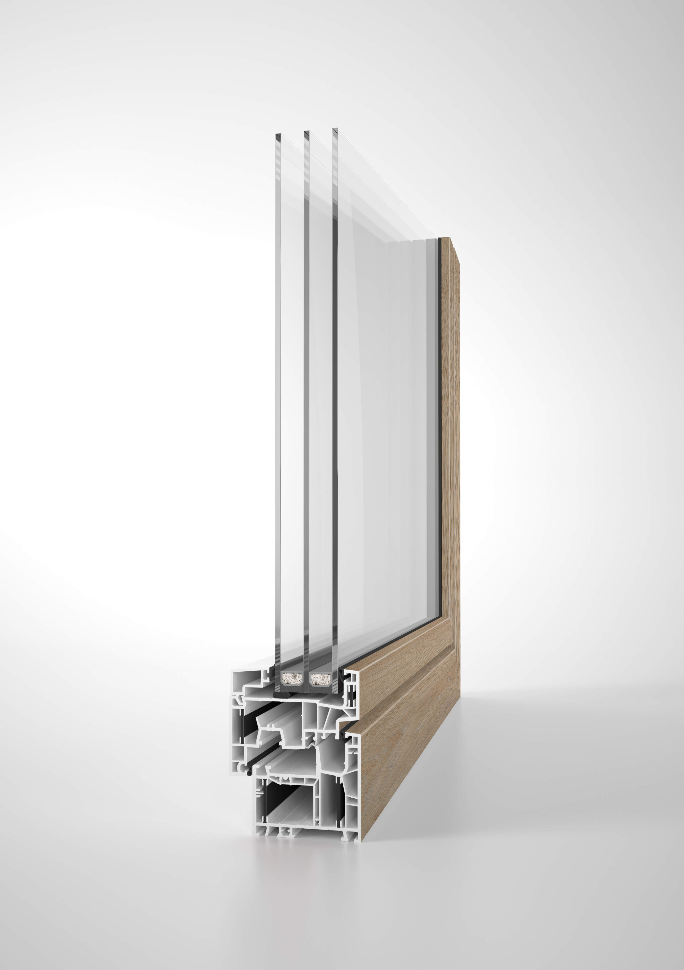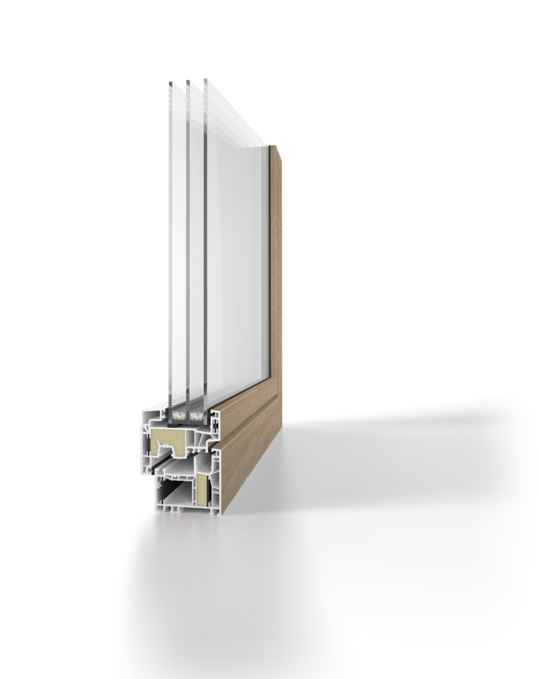 Posebnost sistema je tudi možnost dodatne izolacijske pene v profilu, ki še izboljša toplotne lastnosti. V kombinaciji s troslojnim steklom in kakovostnim tesnjenjem ustvarja občutek topline, tišine in stabilne notranje klime skozi vse leto.