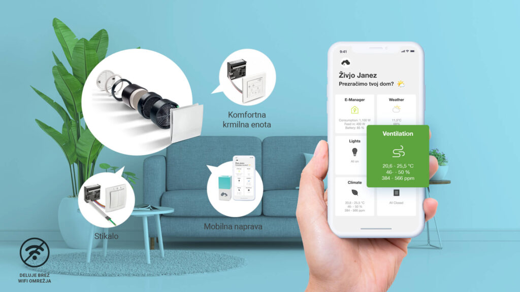 - Stalna izmenjava zraka brez potrebe po odpiranju oken.
