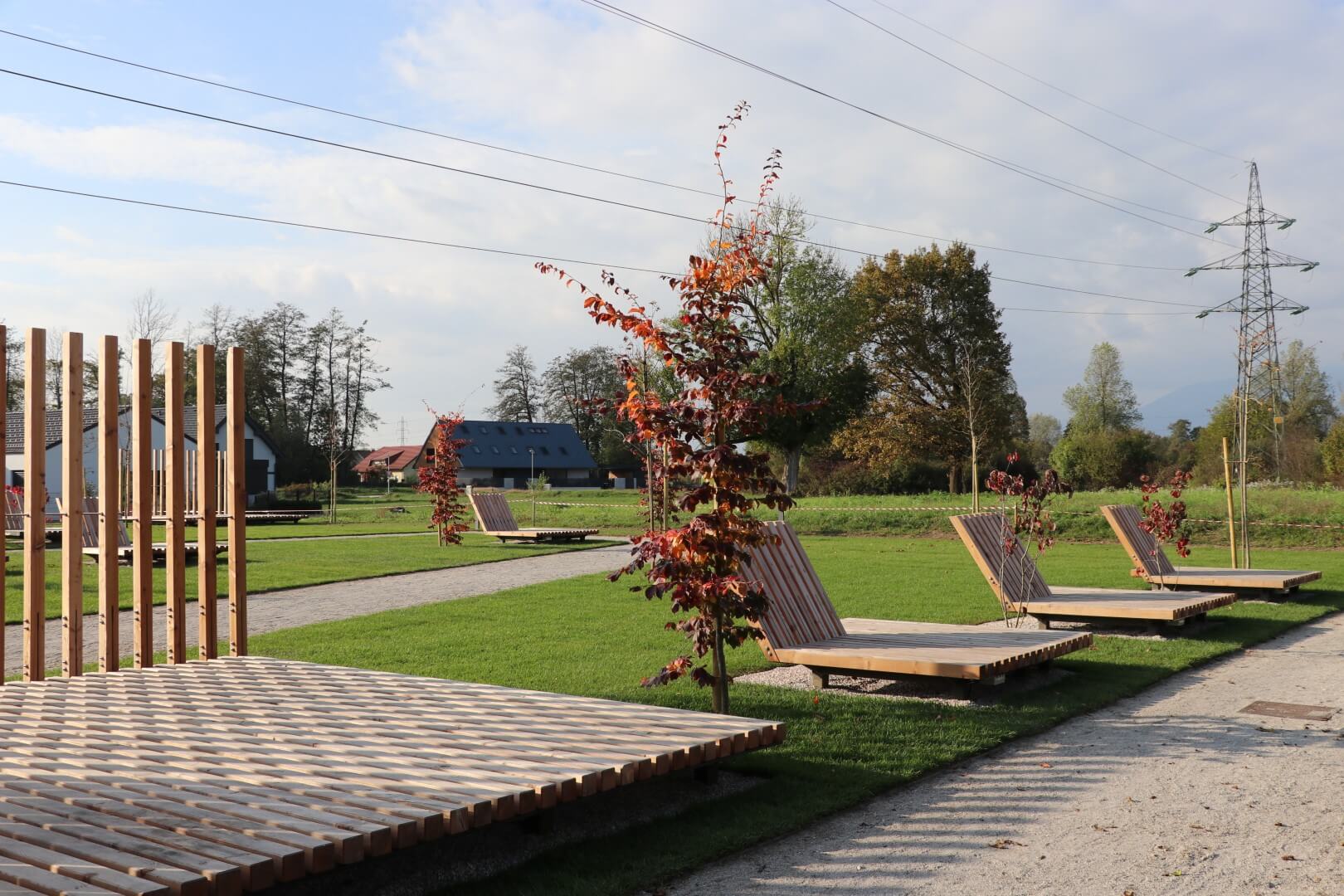 Park je zasnovan kot zunanja meditacijska soba, kjer si lahko vsak posameznik v objemu narave, ob sončnem vzhodu ali zahodu, vzame čas zase. “Ploščadi z lesenimi zastori služijo sprostitvi, jogi, pilatesu, posedanju ob pikniku, ležalniki pa počitku s pogledi na Kamniške Alpe. V parku se sliši tudi žuborenje Kamniške Bistrice,” našteva arhitekt.