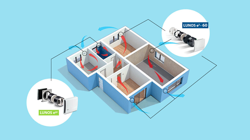 Namesto globokih kanalov in centralne naprave se pri decentralnem prezračevalnem sistemu vgradijo manjše enote neposredno v zunanje stene posameznih prostorov. To pomeni, da ni treba razbijati sten in stropov po celotnem stanovanju. Vgradnja poteka hitro, brez večje umazanije in je večinoma končana v enem dnevu. »Najbolj nama je bilo všeč, da ni bilo treba razkopati pol stanovanja, da bi imela sodobno prezračevanje. Enote LUNOS so nam vgradili v dnevno sobo, spalnico in hodnik dobesedno v nekaj urah. Zdaj se prezračuje samo od sebe – brez najinega odpiranja in zapiranja oken,« dodaja gospod Novak.