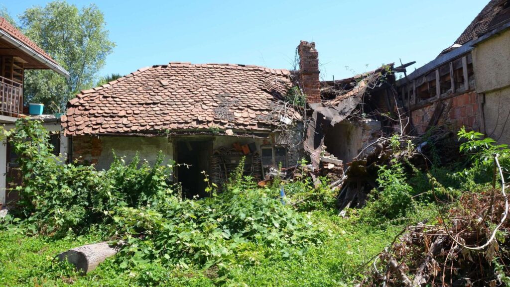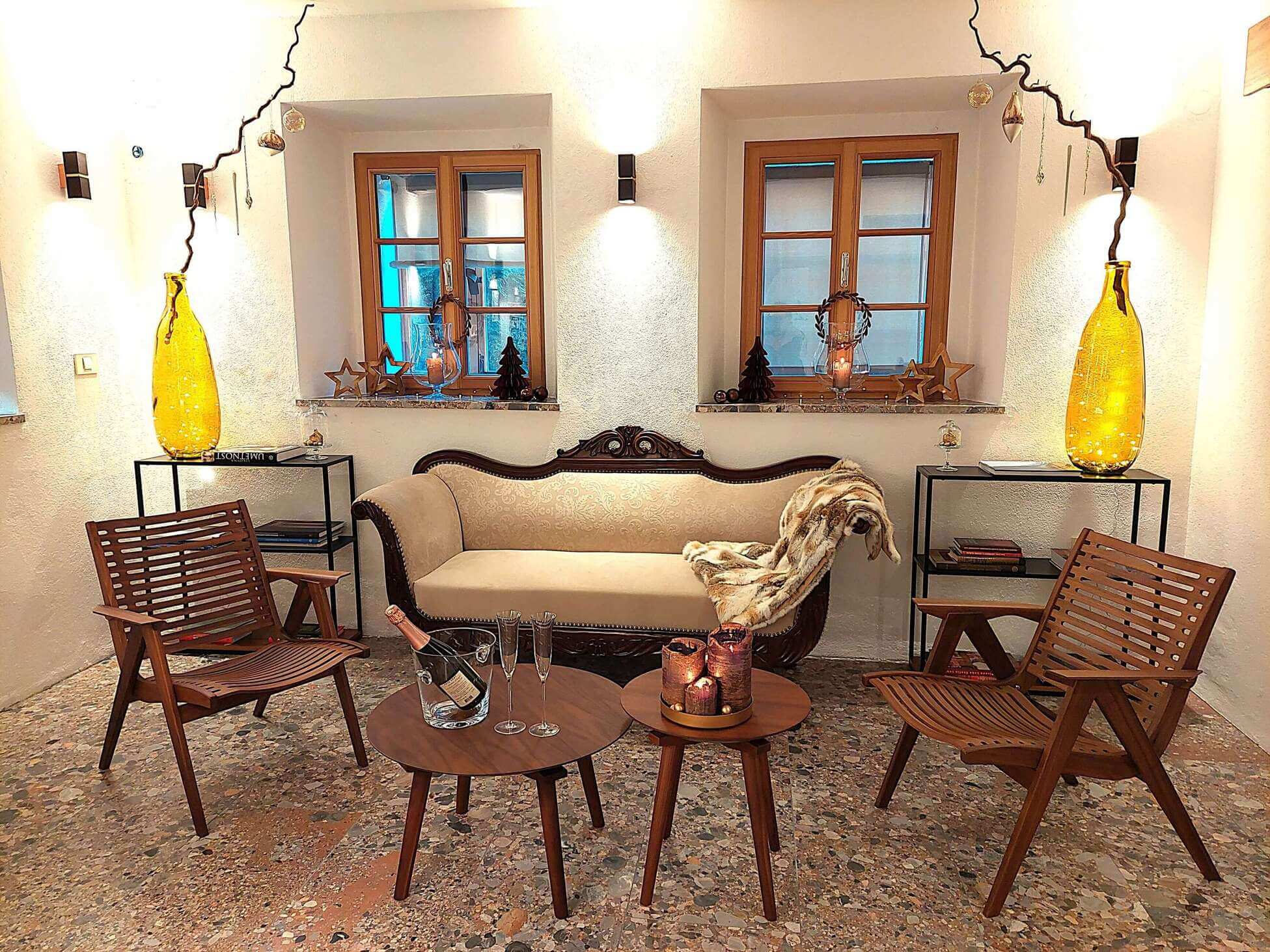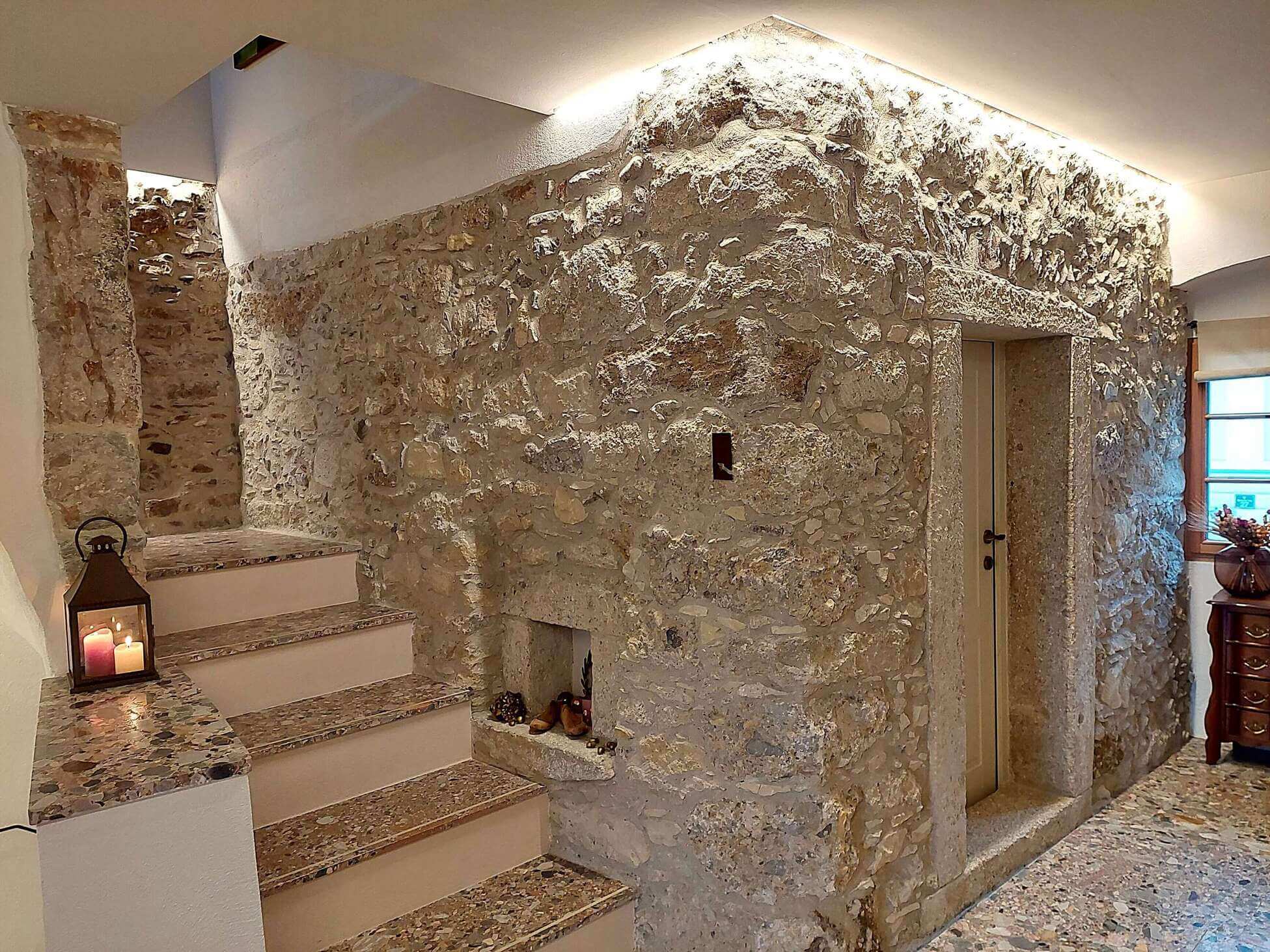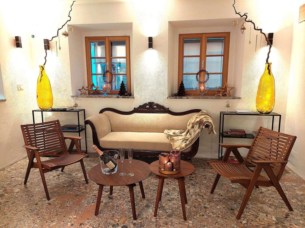 V hiši sta prepoznala ogromen potencial, čeprav je bilo stanje slabo in je bilo treba najprej odstraniti za kar sedemnajst tovornjakov stare navlake. Pri prenovi sta se zavestno odločila za trajnostne pristope – ponovno uporabo in vgradnjo lokalnih materialov. »Praktično se ni metalo nič stran,« poudari Emina in doda: »Pri prenovi hiše smo se trudili uporabljati čim več lokalnih materialov in reciklirati vse, kar je bilo mogoče. Kamen na tleh je škofjeloški konglomerat ‒ kamnitničan, recepcija pa je izdelana iz lehnjaka. Vsi leseni deli, vključno z okni in vrati, so iz slovenskega macesna. Iz slednjega sta tudi zatrep hiše in gang. Vsi strešniki stare hiše so bili ohranjeni in ponovno uporabljeni pri zidu, ki ločuje hišo od sosedov.«
