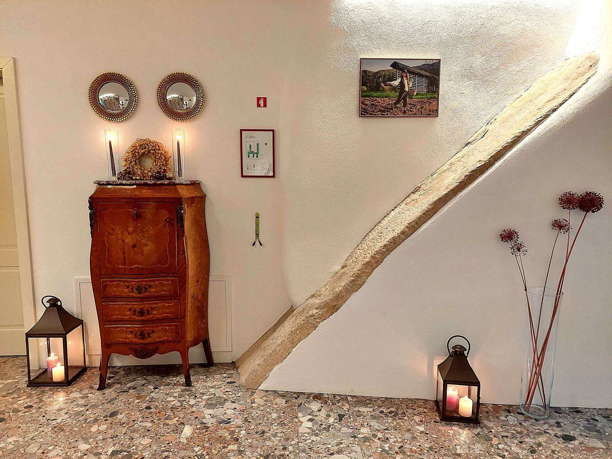 V procesu prenove jim je uspelo ohraniti tudi številne zgodovinske detajle. V nadstropju se bohoti star lesen strop iz leta 1779, medtem ko kovana vrata, ki so jih prav tako našli v objektu, segajo vse do leta 1282. Ohranili so tudi cestno muldo in gotski portal v prvem nadstropju. Z reprodukcijami del Ivana Groharja so se poklonili slovitemu impresionistu, znamenitega Sejalca pa upodobili tudi na fotografijah. Vlogo sejalca je na izvirni lokaciji simbolno prevzela kar hči Ema.