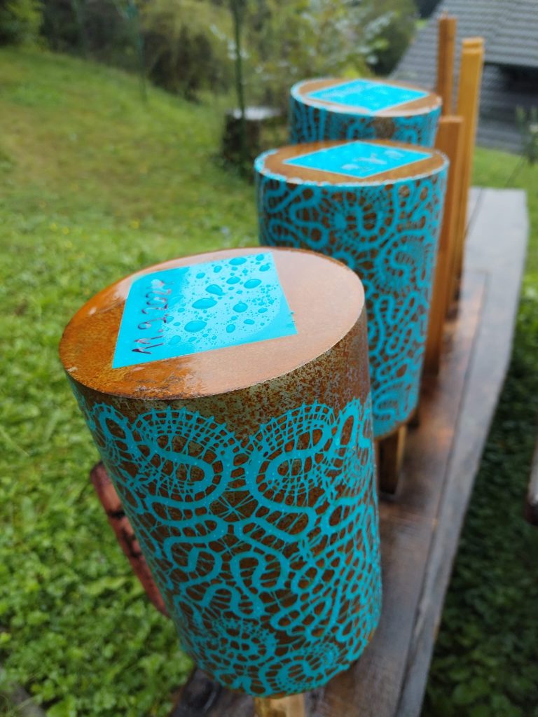 »Enkrat sva tako zafurala, da sva pravzaprav po naključju odkrila še en dodaten postopek, kako ustvariti popolnoma srebrno (nezarjavelo) kovino s subtilnimi vzorci na njej. Po fazi rjavenja je potem seveda treba izdelek tudi zaščititi proti nadaljnjemu rjavenju,« pojasnita Kristina in Zoran.