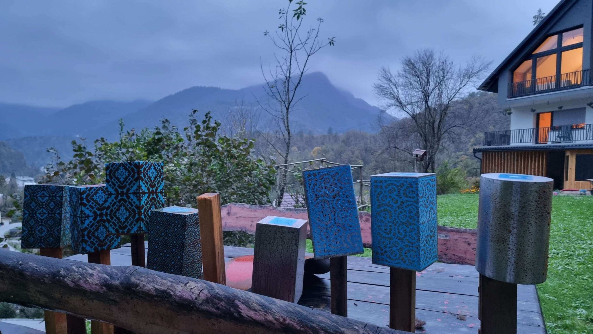 »Vodilna ideja je poudariti lepoto kontrastnih materialov, kot sta korten in les, ter ohraniti močan poudarek na ročni izdelavi. Les je iz odsluženih kosov hrastovih tramov. Vsako svetilo je izdelano tudi s pomočjo narave, saj mora korten na dežju stati mesec, lahko tudi mesec in pol, odvisno od vremenskih pogojev. Včasih je prav komično, ko sosedi obdelujejo vrt, midva obdelujeva “svojo rjasto gredico”.«