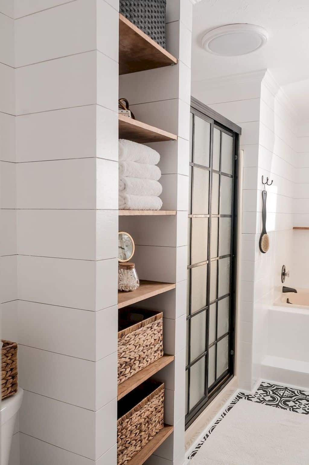 Niša bo bolj izstopajoča, če jo boste uokvirili. Na sliki spodaj so nišo obdali s črnim robom, ki se ujema z drugimi črnimi dodatki v kopalnici (armaturo za prhanje in okvirjem vrat.