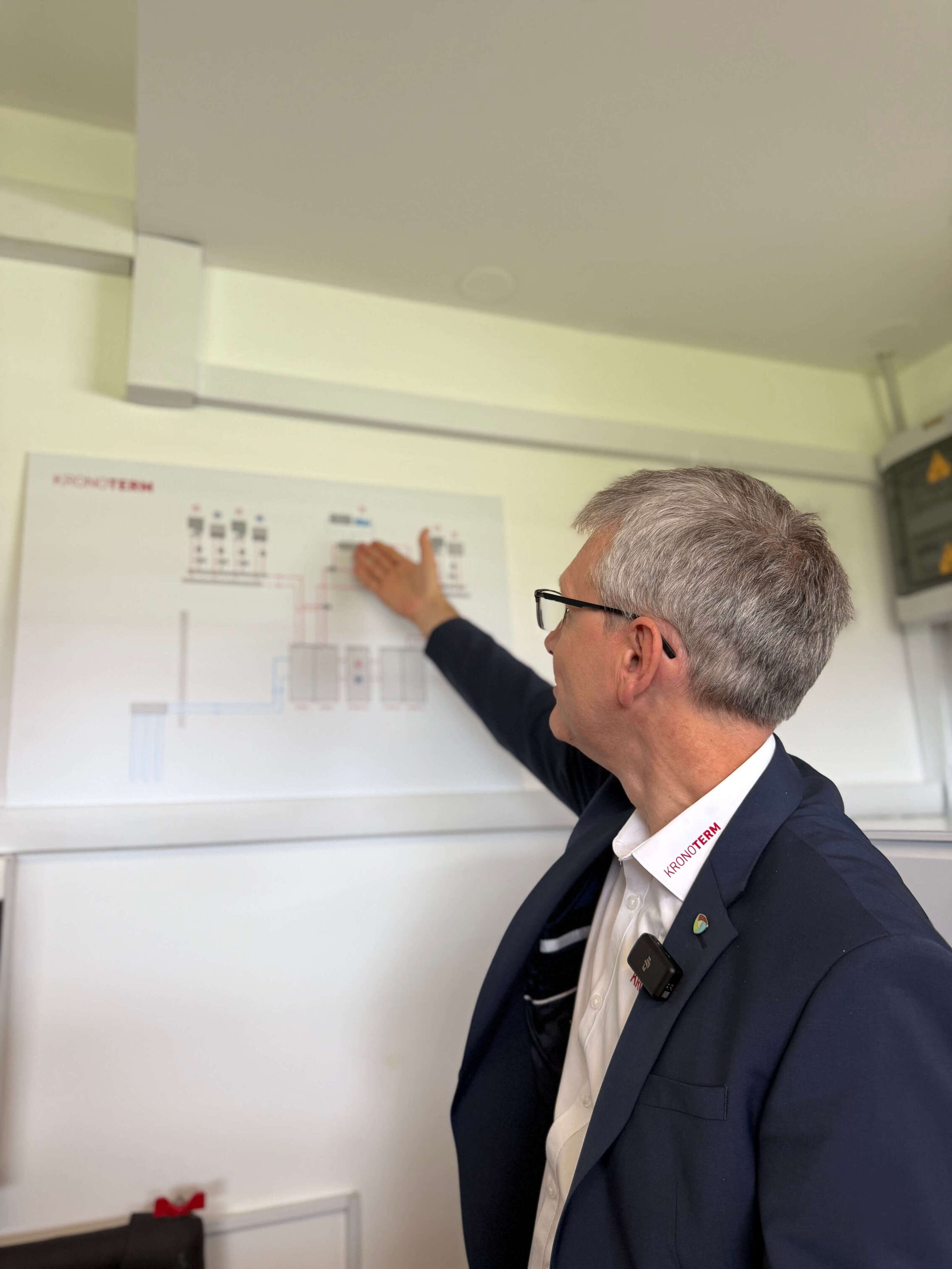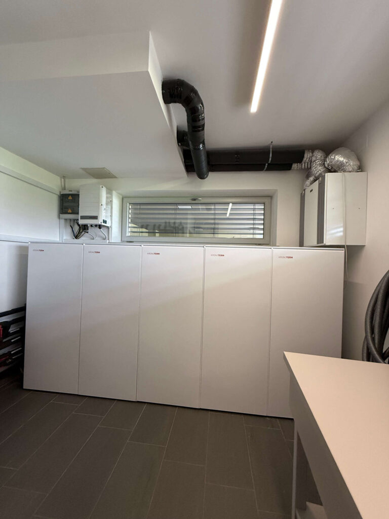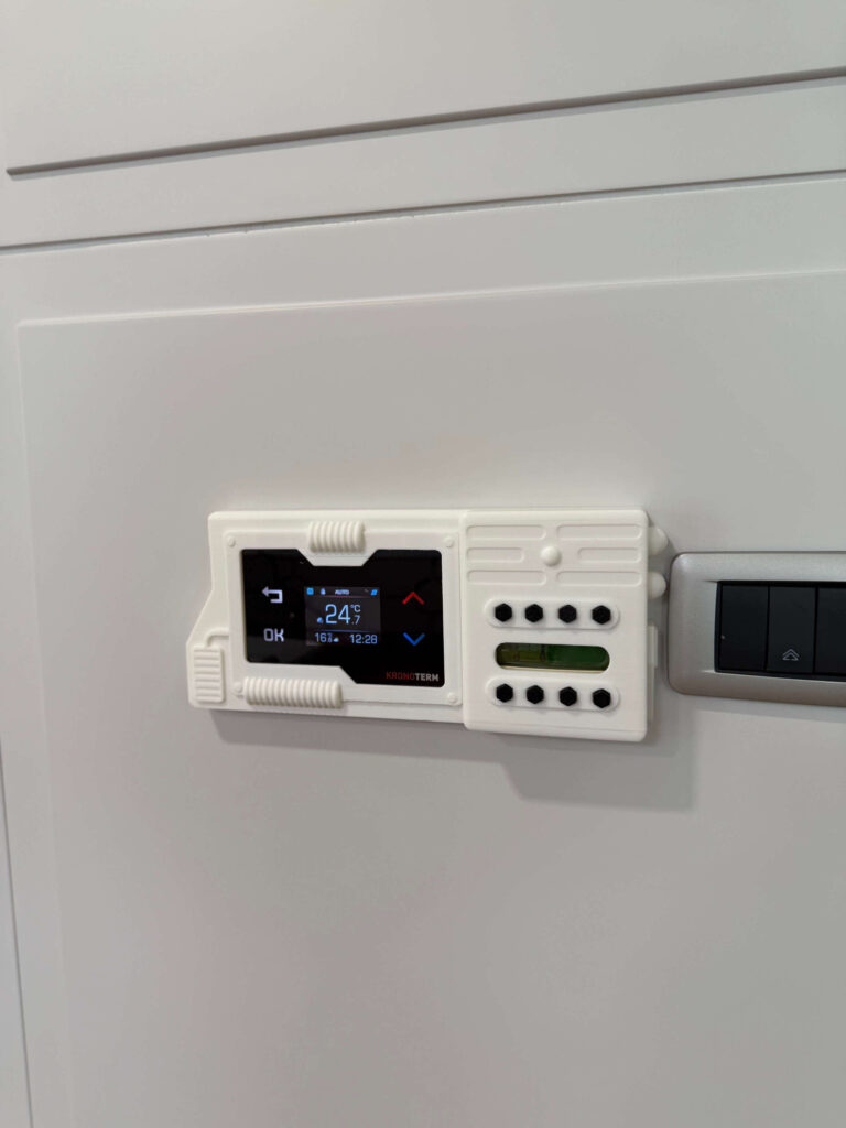 Strokovno pomoč za to plat del so poiskali pri podjetju KRONOTERM, ki je poskrbelo za zamenjavo oziroma nadgradnjo sistema toplotne črpalke. Dr. Dean Besednjak takole opiše postopek. »Lastnika sta želela obstoječo toplotno črpalko odstraniti, in ko je bilo to narejeno, sta se odločila za izvedbo dodatnih geovrtin in za toplotno črpalko Etera oziroma geotermalno toplotno črpalko. Če je stari sistem skrbel zgolj za ogrevanje in hlajenje bivalnega dela ter pripravo sanitarne vode, je bilo treba pri novem sistemu poskrbeti tudi za pripravo bazenske vode, torej hlajenje in gretje bazenske vode, gretje, hlajenje tal okrog bazena in gretje oziroma hlajenje zraka, ki se vpihuje v bazenski prostor. Se pravi: sistem se je nadgradil, dobil dodatne funkcionalnosti, pri čemer pa je uporaba ostala enako preprosta ali celo še bolj preprosta, kot je bila pred tem.«