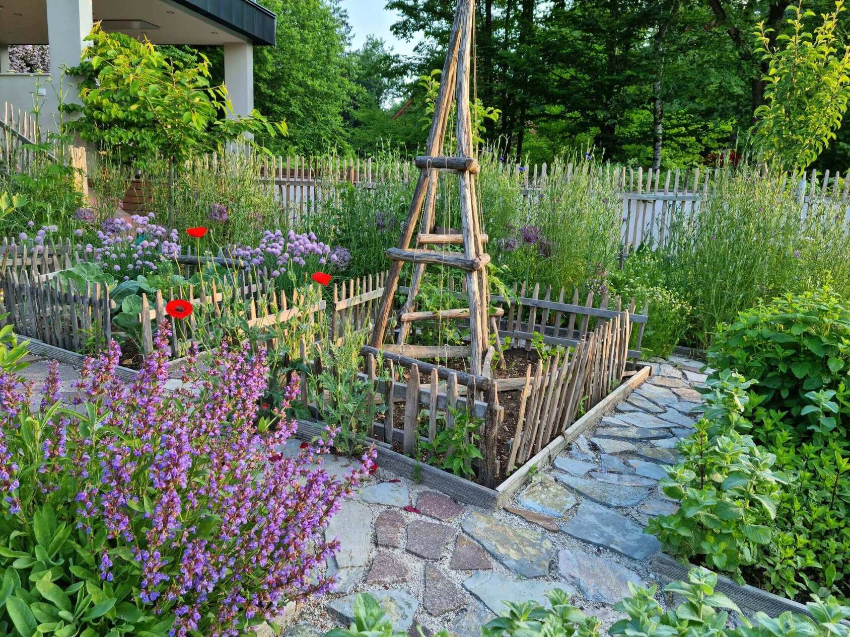 Dolgo sta razmišljala, kako vključiti zelenjavno-zeliščni del vrta v okolico njunega doma. Domislila sta se kombinacije letne kuhinje, obdane z visokimi gredami, na katerih gojita zelenjavo in zelišča. Tako sta postala samooskrbna.