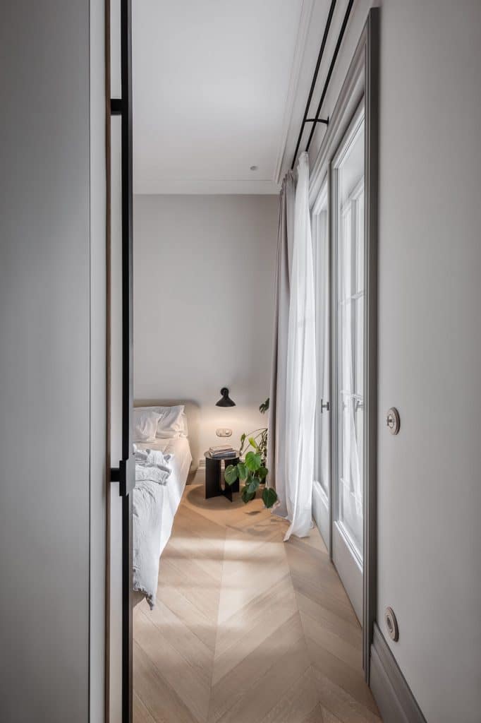 Jasno je bilo, da prenova še zdaleč ne bo preprosta, kaj šele hitra. V želji, da bi stanovanju povrnili njegov meščanski značaj, je bilo treba temeljito spremeniti celostno zasnovo elementov v stanovanju, od vrat in oken do talnih letev in stropov. Stanovanje se deli na dva dela: bivalni in dnevni del. Prvi je orientiran na glavno ulico, sestavljajo pa ga kuhinja, jedilnica in dnevna soba. Arhitekti so si zamislili lesen tlak v vzorcu ribje kosti, ki je nekoč prevladoval v meščanskih stanovanjih, tudi preostalo pohištvo v stanovanju pa je minimalno, skrbno izbrano.