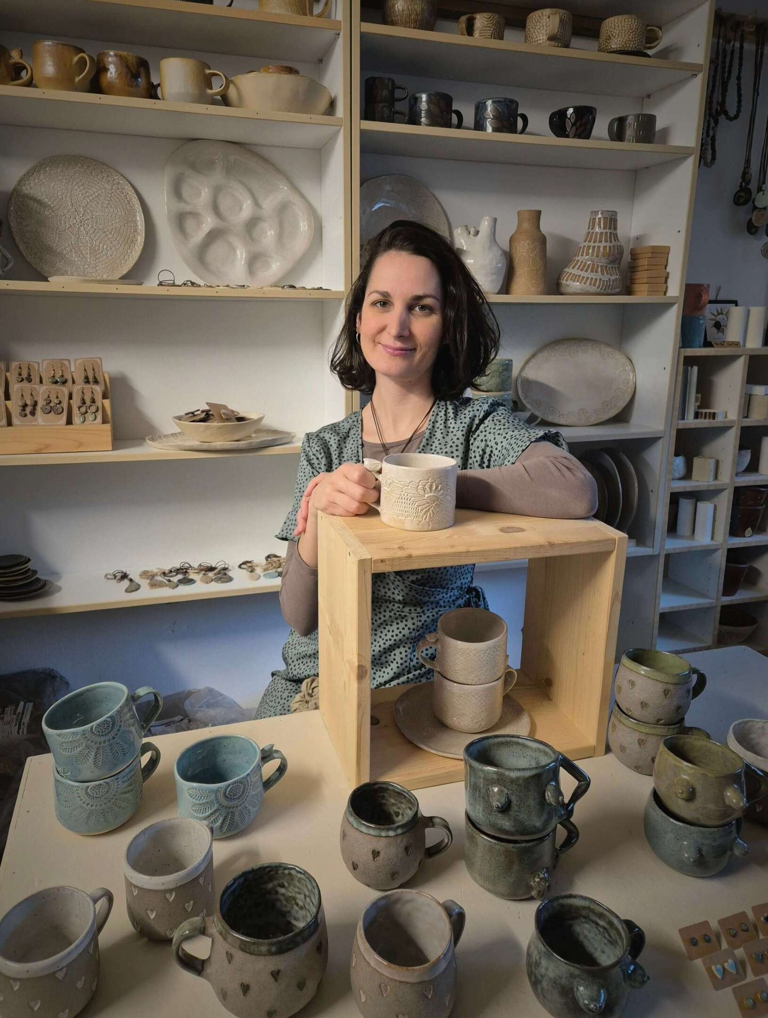 Sprva se je lotila izdelave unikatnega keramičnega nakita. Kot pove, gre za precej logistično odločitev, saj je živela v Ljubljani, medtem ko je bila peč za keramiko v Mariboru, majhen kose pa je bilo bistveno lažje prevažati sem ter tja. Pri oblikovanju nakita je urila svojo potrpežljivost, hkrati pa je razvila tudi poseben čut do detajlov, kar je kasneje prenesla tudi v skodelice in ostale izdelke.