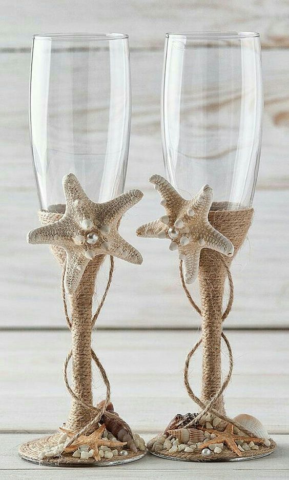 Na bližnje police postavite sobne rastline v cvetličnem lončku, ki ste ga polepšali z vrvjo in morsko zvezdo. Zemljo okoli rastlin zakrijte s steklenimi kamenčki, ki spominjajo na bisere, ali z manjšimi kamenčki zanimivih oblik.