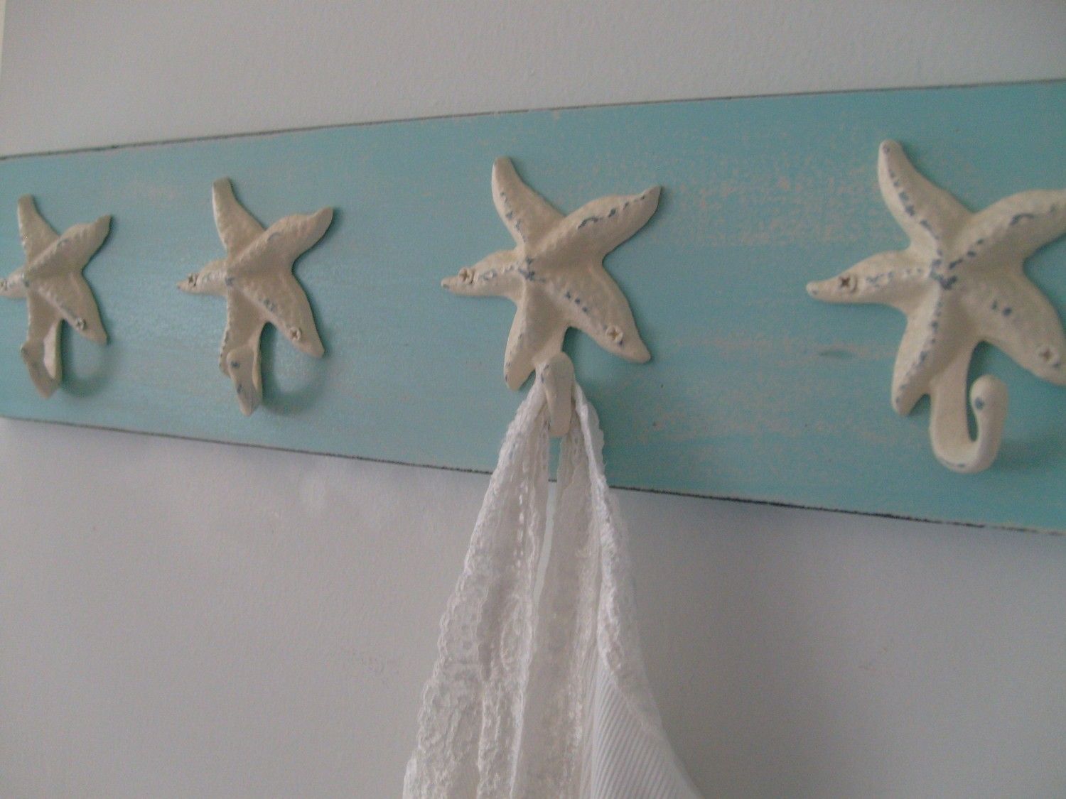 Z malce domišljije in kreativnosti lahko iz predmetov, ki ste jih našli v bližini morja, izdelate uporaben obešalnik. Leseno desko obarvajte modro, nanjo pričvrstite kljukice in čeznje nalepite morske zvezde. In že imate v predsobi zanimiv stenski obešalnik!