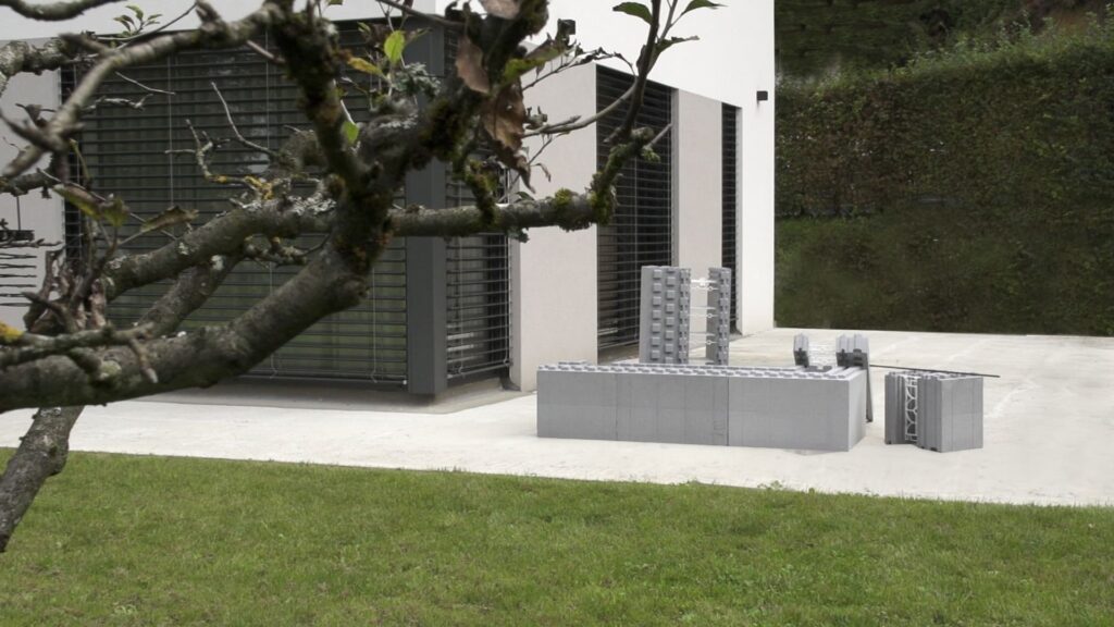 A ustavimo se najprej pri sistemu gradnje te zanimive hiše, saj je zelo inovativen. Lastnika sta se namreč odločila za ICF gradnjo s toplotno-izolativnimi opažnimi elementi, kar je hibrid med klasično zidano in montažno gradnjo. »Gre za relativno velike, a lahke toplotno-izolativne opažne zidake, ki jih po principu zlaganja lego kock sestavimo v steno. Toplotna izolacija predstavlja izgubljeni opaž, saj po betonaži stene ostane kot fasadna izolacija. Rezultat je hitra gradnja z dobro znanim, robustnim materialom za nosilno konstrukcijo – armiranim betonom v jedru in vrhunsko toplotno izolacijo iz grafitnega polistirena,« opisuje direktor podjetja JUBHome Aljaž Šterk.