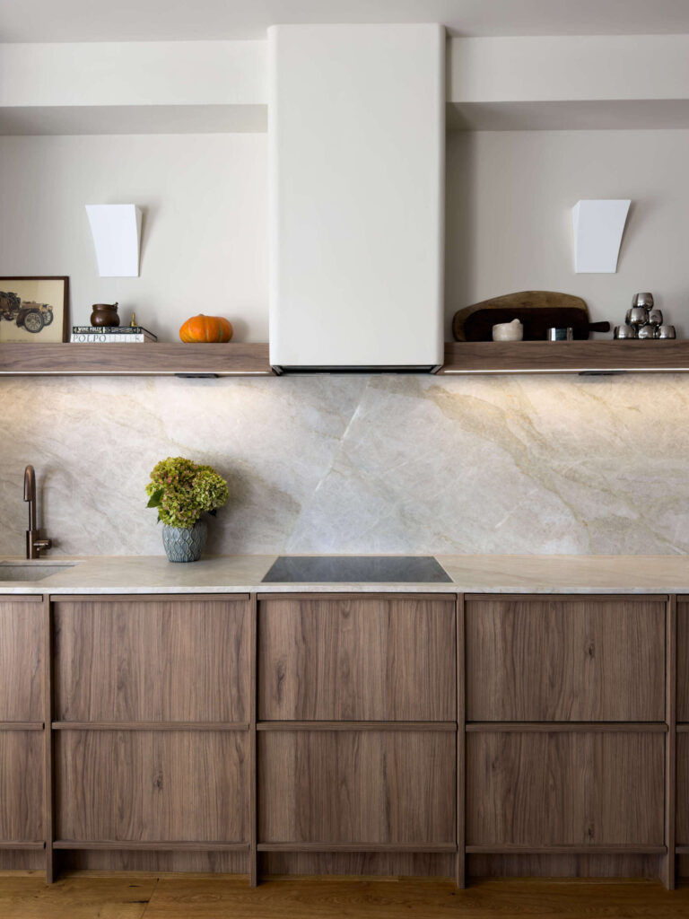Pri opremljanju novega štirisobnega stanovanja so se izogibali preveliki množici dekorativnih predmetov. »Vsak dodatek ima svoj namen – ne le okrasni, temveč funkcionalni. V naši kuhinji je osrednja zvezda polička z vsakodnevno uporabljenimi predmeti. Nekdo me je pred kratkim vprašal, ali me ne moti, da se skodelice za kavo zaprašijo. Pri nas se to ne zgodi – toliko kave spijemo, da je to praktično nemogoče. Enako velja za deske za rezanje in druge predmete, ki so estetski, a obenem vsak dan v uporabi.«