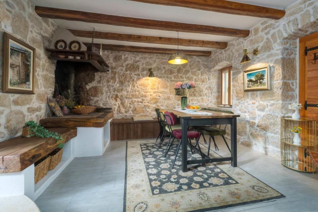 Prelepa hiša tvori harmonično vez z vrtom in bazenom. Ko smo enkrat za hišo, nas pozdravi intimen prostor, omejen s kamnitim zidom in namenjen uživanju ob vodi. Izbrana obnovljena fotelja na pokriti terasi pa lastnika razveseljujeta z dodatnim udobjem, ki ga od počitniške hiške tudi pričakujemo.