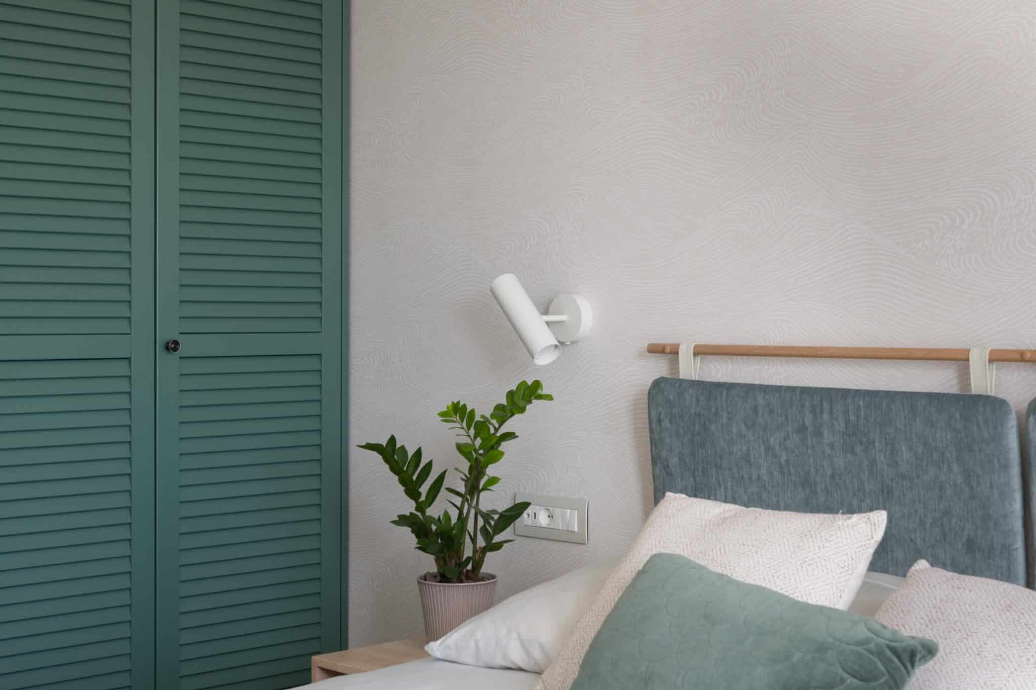 Tudi v preostalih prostorih stanovanja najdemo sodobno reinterpretirane tradicionalne mediteranske detajle – vrata garderobnih omar so oblikovana kot lesena polkna, vzorec ploščic v kopalnici spominja na valove razburkanega morja, tapeta z rastlinskim motivom pa nas v mislih popelje med avtohtono rastlinje – rožmarine, oleandre in sivko.