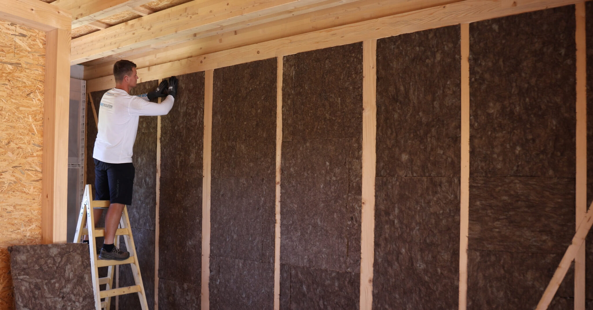 Sicer pa je lesena hiša zahtevala tudi razmislek pri izolaciji, saj sta si lastnika želela naravnih in učinkovitih materialov. »Les velja za zelo dober konstrukcijski material, ima pa v izolacijskem smislu nekaj šibkih lastnosti, to so toplota, zvok in požar. Les ima približno 5x višjo toplotno prevodnost, torej je slabši od sodobnih izolacijskih materialov. Samostojno torej težko dosega zahteve po energetski učinkovitosti. Glede zvoka les nima niti zadostne mase niti nima zvočno absorpcijskih lastnosti, da bi lahko konkretno pomenil zvočno izolacijsko vlogo. Glede požara pa ima masiven les res relativno dobro požarno odpornost, vendar ga je vseeno treba tudi požarno zaščititi. Optimalen izolacijski material je torej tisti, ki združuje vse lastnosti, da bomo lesu izboljšali njegove hibe. To je kamena mineralna volna oziroma mineralni izolacijski materiali, ki so negorljivi, požarno zaščitijo les, imajo praktično najboljšo sposobnost zvočne absorpcije in so visoko toplotno izolativni,« pove Primož Bernard, vodja tehnične podpore pri Knauf Insulation. Pojasni, da so omenjeni izolacijski materiali naravni, saj gre za minerale. »Osnovne surovine so kamenine vulkanskega izvora pri kameni mineralni volni ali pa kremenčev pesek oziroma odpadno steklo pri stekleni mineralni volni. Poleg tega je naša linija izdelkov Ecose proizvedena z naravnim vezivom na rastlinski bazi in tako dosega tudi standarde različnih okolijskih certifikatov, npr. Eurofinsov certifikat kakovosti notranjega zraka.«