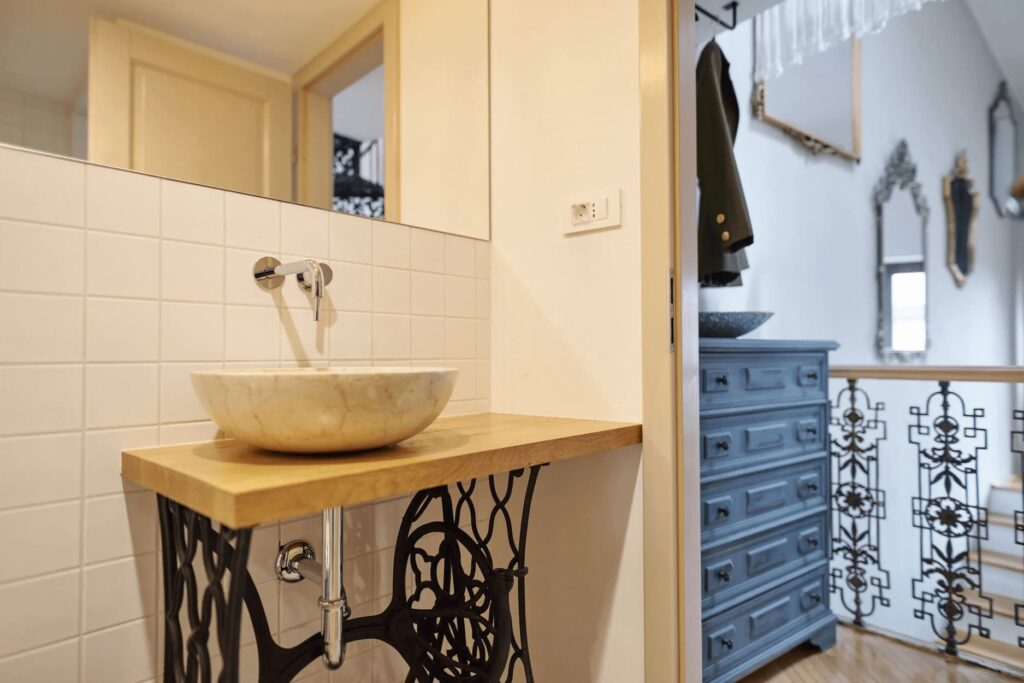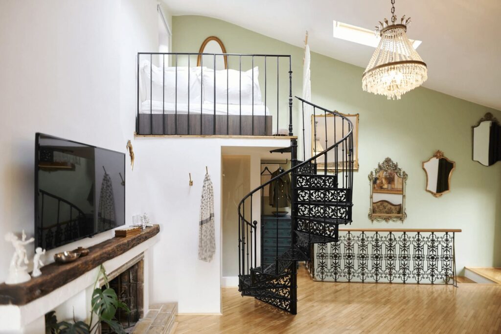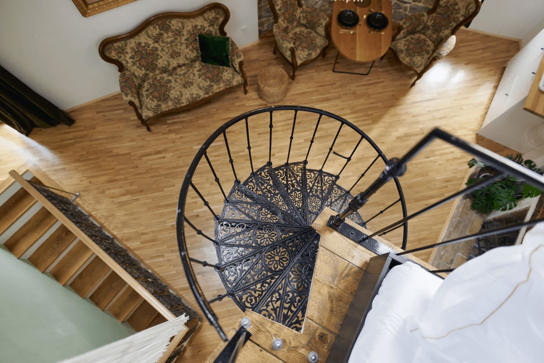 Poseben projekt so bile tudi restavrirane kovane stopnice, ki jih je našel na italijanski spletni strani. Spominjale so ga na stopnice, ki jih je imela njegova nona, zato je takoj zgrabil priložnost in jih umestil v prostor. »Njihov izvor mi ni znan, predpostavljam, da so iz okolice Milana. So zelo stare, to pa vem zato, ker ko naredijo poln krog, ne dosežejo niti dva metra.«