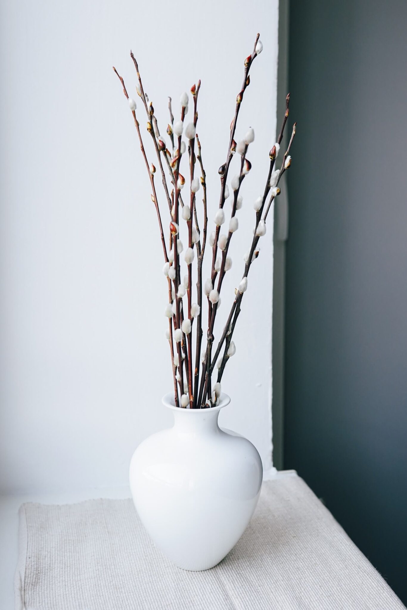 Lep prizor bomo ustvarili tudi z golimi vejami grmov, ki imajo pozimi obarvano skorjo, kot sta vrba beka in navadni (rdeči) dren, pa tudi drobni grmički borovnic. Te veje bodo pognale listke, ki bodo teden ali dva vnašali svežino v naše prostore.