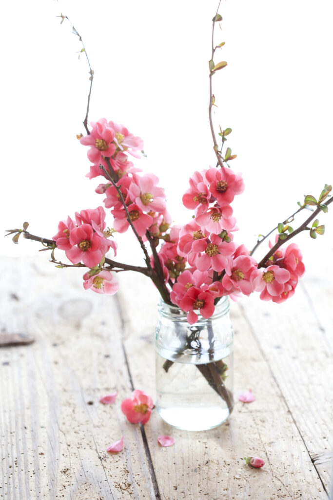 S cvetočimi vejami češnje, mandljevca, breskve, jablane, slive in kutine, pa tudi z mačicami vrbe in leske bomo privabili v naš dom občutek pomladi. Na sprehodu lahko naberemo veje navadnega ali rumenega drena. Kdor ima na vrtu okrasne grme, kot so forsitija, nepozebnik, japonska kutina, nekatere vrste brogovit in drugi, bo šopke lahko še popestril z močnimi barvami cvetov.