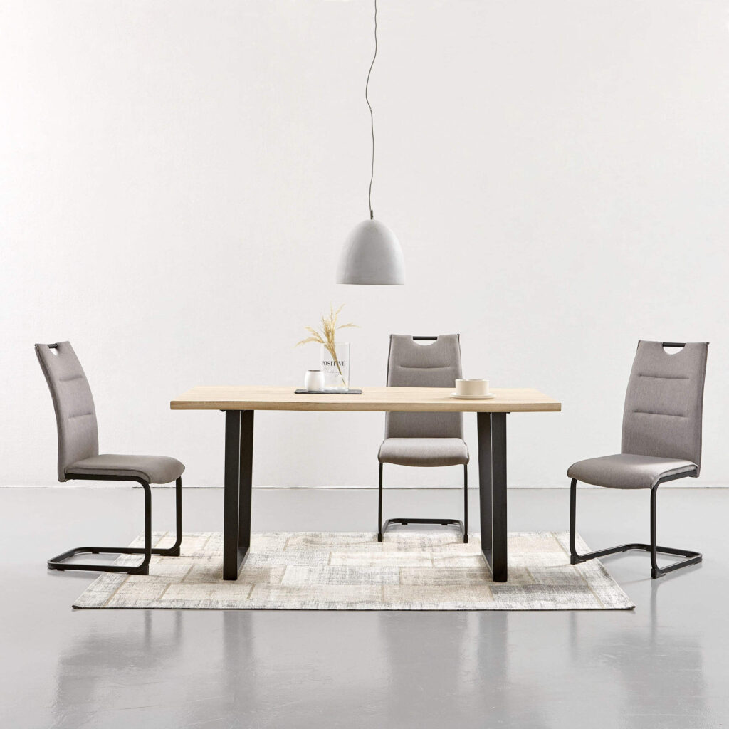 Za popolno mehkobo in eleganco pa poskrbijo oblazinjeni stoli, ki so na voljo v modnih barvah sezone: sivi, bež in globoko zeleni. Med seboj jih lahko kombinirate ali ostanete pri eni barvi – v vsakem primeru bo vaš jedilni kotiček deloval sodobno in usklajeno. Oblazinjeni stoli se poleg tega čudovito podajo tako v moderne, minimalistične ambiente kot v rustikalen in skandinavski interjer.