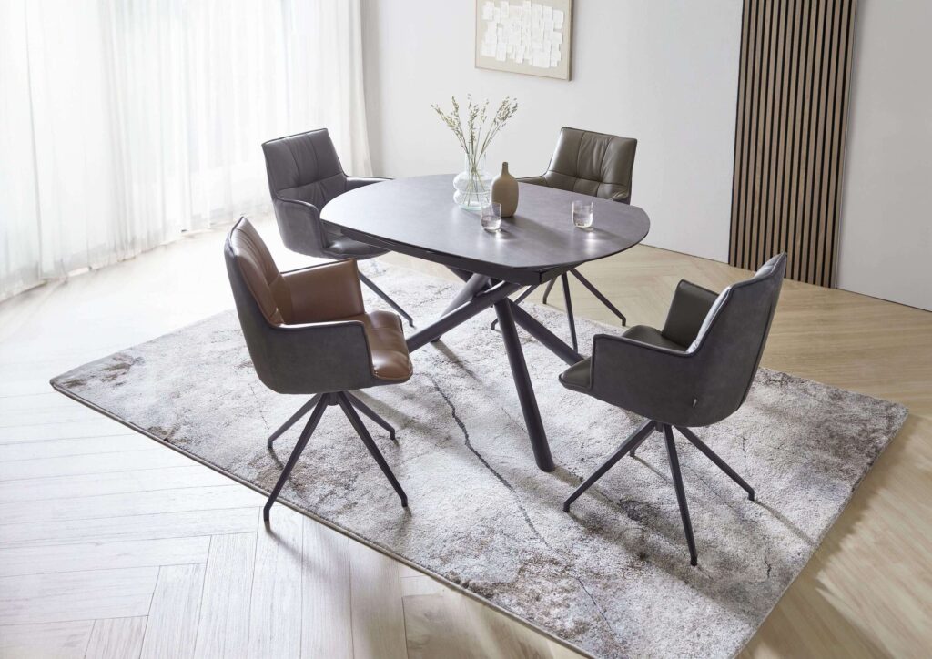 V zadnjih letih na popularnosti pridobivajo tudi mize iz keramike. Keramične površine v sivih in svetlih tonih so izjemno odporne proti praskam, toploti in madežem, zato so odlična izbira za družine ter vse, ki radi kuhate in postrežete v velikem slogu. Kovinske noge pa prostoru dodajo moderno industrijsko eleganco – hkrati so stabilne, minimalistične in popolno kontrastne toplini lesa ali keramike.