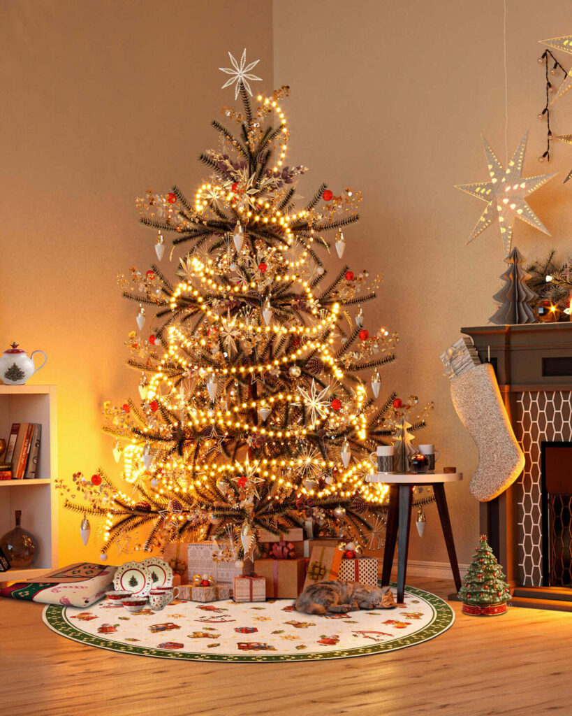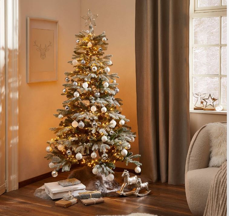 Nič ne ustvari prazničnega vzdušja tako hitro kot čarobno božično drevo. V trendu so različne višine – od majhnih namiznih drevesc do bogatih 240 cm visokih klasik, ki postanejo središče doma. Naravna drevesa prinašajo vonj po gozdu in avtentičnost, medtem ko je umetna jelka izjemno praktična: ne izgublja iglic, primerna je za večletno uporabo, na voljo pa je v različnih gostotah, barvah in stilih (od naravno zelenih do rahlo zasneženih). Majhna drevesca postavite na komode, okenske police ali kuhinjske pulti, velika pa sodijo v dnevne prostore in jedilnice z odprtim tlorisom.