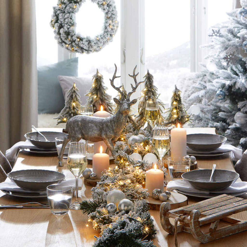 Seveda pa pravega decembrskega vzdušja v jedilnici ne morate pričarati niti brez božične dekoracije. Trendi letošnjega leta prinašajo kombinacijo tradicionalnih motivov in naravnih materialov. Les, steklo, volna, evkaliptus, rdeče jagodičevje in mehka bela svetloba se povezujejo v zgodbo, ki je hkrati sodobna in nostalgična. Poudarek je na razkošnih, a toplih aranžmajih, dišečih svečah ter naravnih girlandah, ki ustvarjajo domačno vzdušje. Izbor dekoracij močno vpliva na to, kako bo zasijala vaša praznična miza, zato naj bo to preplet elegance, topline in osebnega stila.