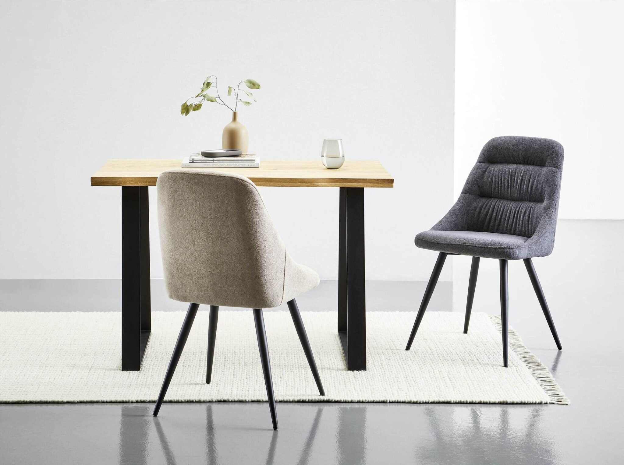 Za popolno mehkobo in eleganco pa poskrbijo oblazinjeni stoli, ki so na voljo v modnih barvah sezone: sivi, bež in globoko zeleni. Med seboj jih lahko kombinirate ali ostanete pri eni barvi – v vsakem primeru bo vaš jedilni kotiček deloval sodobno in usklajeno. Oblazinjeni stoli se poleg tega čudovito podajo tako v moderne, minimalistične ambiente kot v rustikalen in skandinavski interjer.