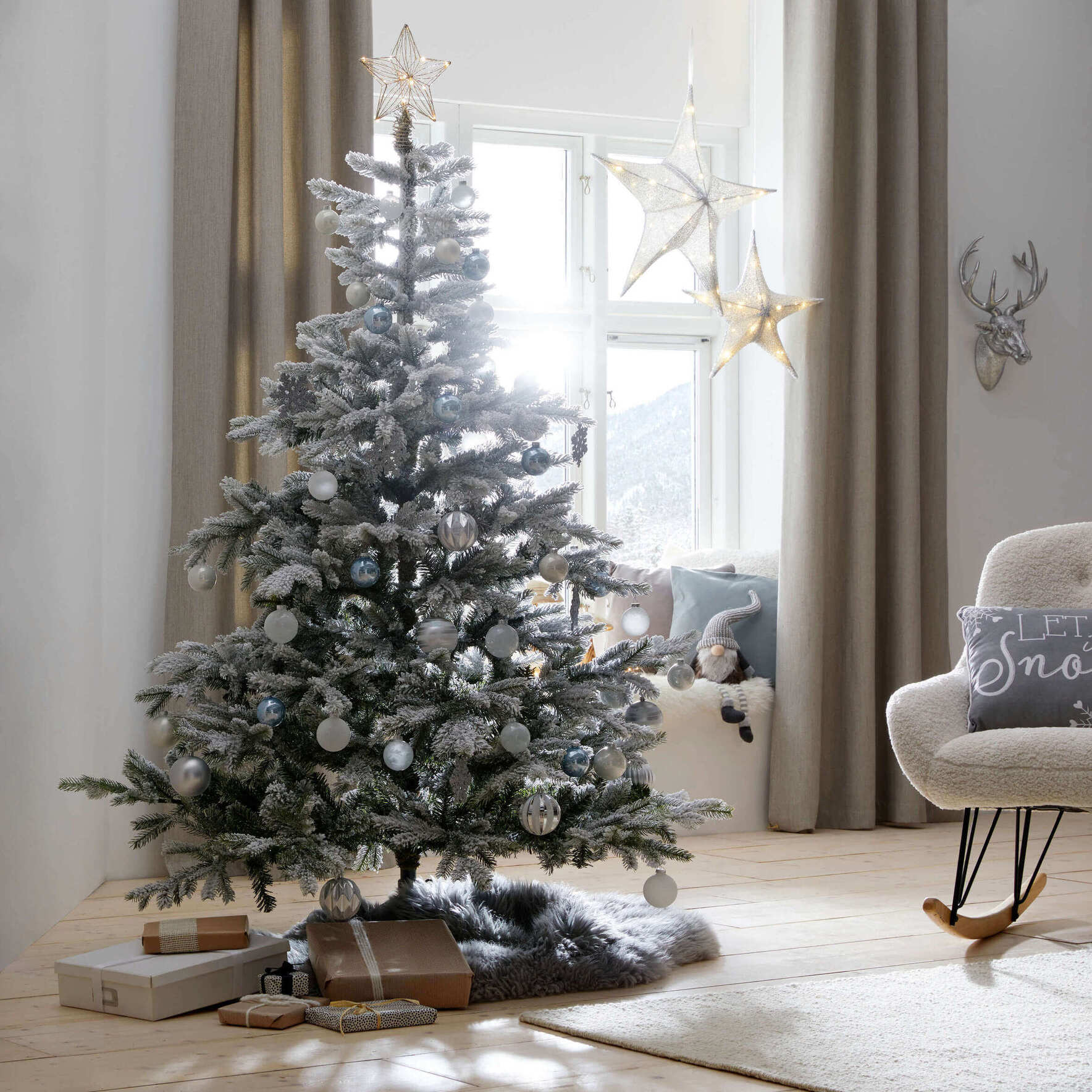Nič ne ustvari prazničnega vzdušja tako hitro kot čarobno božično drevo. V trendu so različne višine – od majhnih namiznih drevesc do bogatih 240 cm visokih klasik, ki postanejo središče doma. Naravna drevesa prinašajo vonj po gozdu in avtentičnost, medtem ko je umetna jelka izjemno praktična: ne izgublja iglic, primerna je za večletno uporabo, na voljo pa je v različnih gostotah, barvah in stilih (od naravno zelenih do rahlo zasneženih). Majhna drevesca postavite na komode, okenske police ali kuhinjske pulti, velika pa sodijo v dnevne prostore in jedilnice z odprtim tlorisom.