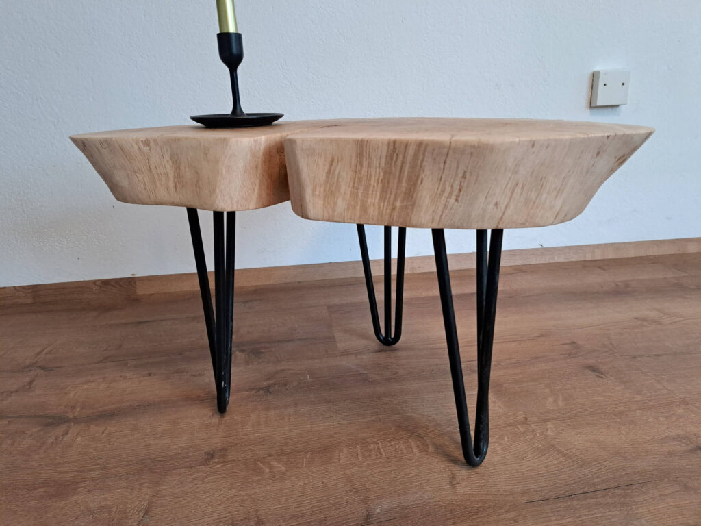 Monikine poti so se z lesom križale povsem po naključju. Pred petimi leti je iskala unikatno klubsko mizico za v domačo dnevno sobo, a na tržišču ni našla takšne, ki bi ji bila všeč. Tako se je odločila, da zaviha rokave in se izdelave loti kar sama. Ekonomistka po poklicu se je celotnega procesa lotila v lastni izvedbi, vse od iskanja primernega kosa do iskanja pravih premazov in podnožja. »Tako se je rodila miza, ki mi še danes, po vseh teh letih, pričara nasmeh na obraz. Imam jo rada in jo spoštujem, kot bi bila živa stvar,« nam s ponosom zaupa Monika.