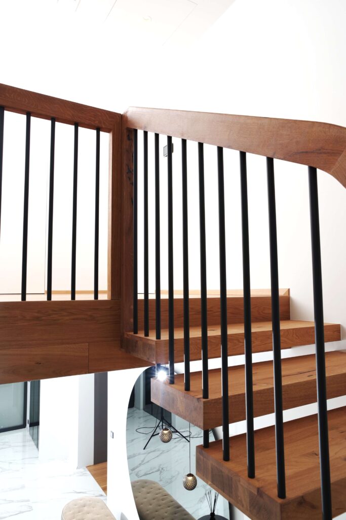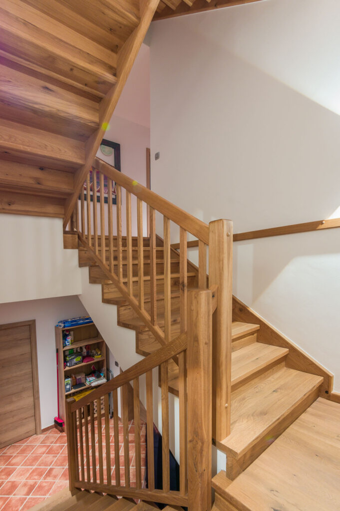 Seveda pa pri stopnicah ne smete pozabiti niti na njihov neločljivi del – ograjo. »Ograja je eden ključnih elementov stopnišča, saj mora biti varna, udobna za uporabo in vizualno usklajena s celoto,« pravijo pri Mizarstvu Jezeršek, kjer ograjo vedno prilagodijo stopnicam in stilu interjerja, kar stopnišču podari profesionalno, zaključeno podobo. Izbirate lahko med lesenimi, kovinskimi, steklenimi ali kombiniranimi izvedbami ograj, pri čemer lesene ograje dajejo mehkobo, kovinske so sodobne, steklene pa poskrbijo za maksimalno pretočnost svetlobe in prostorsko fluidnost. V domovih z manjšimi otroki lahko izberete še dodatne varnostne elemente, ki pa vizualno ne obremenijo ambienta.