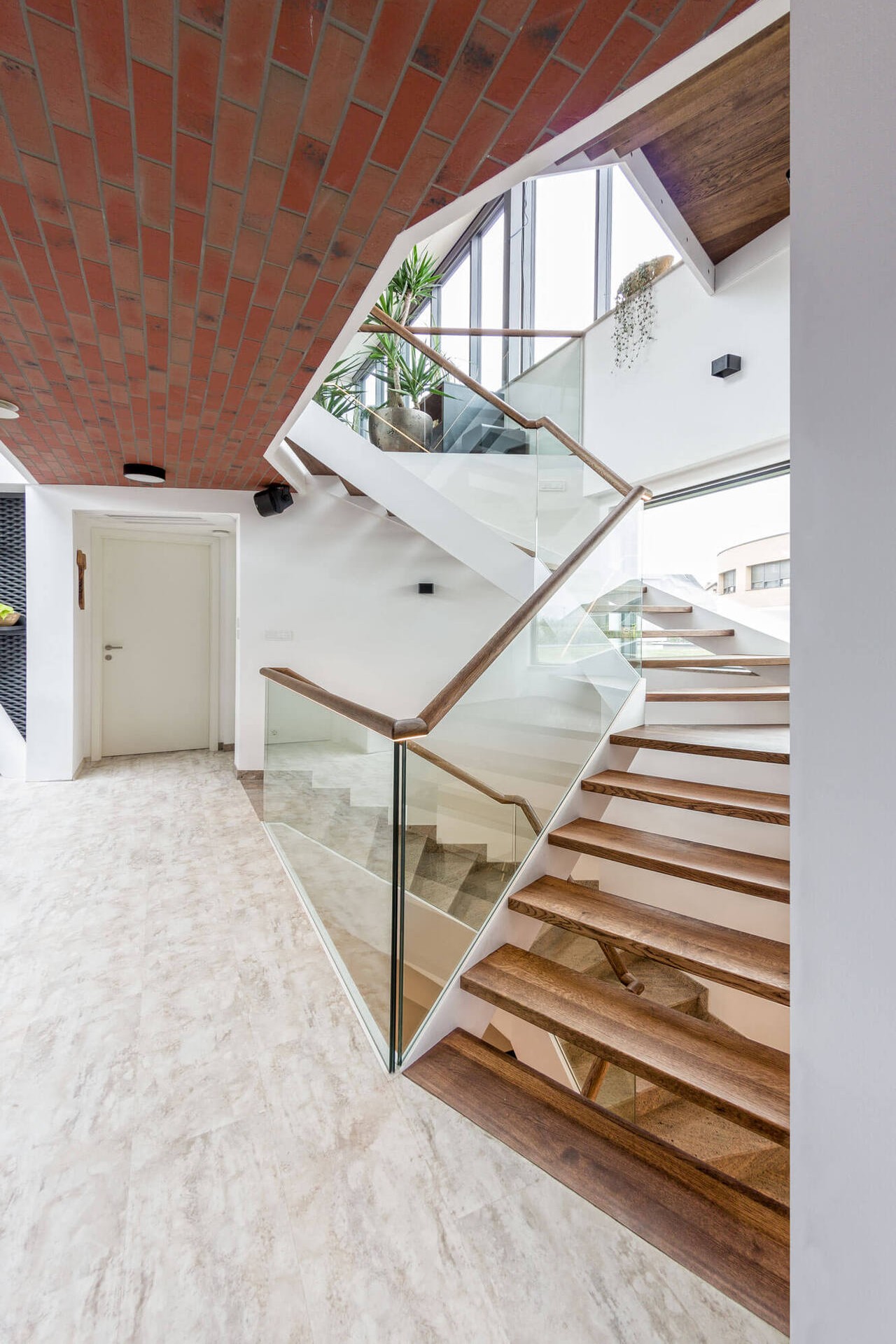 Stopnice povezujejo prostore vertikalno, dnevno-bivalni del s spalnicami zgoraj in kletjo spodaj, vendar obenem tudi usmerjajo pogled, vplivajo na pretok svetlobe, določajo, kako se po prostoru premikate in ga zaznavate. Konzolne stopnice na primer ustvarijo občutek zračnosti in prostornosti, medtem ko masivnejše stopnišče z vidno konstrukcijo daje vtis mogočnosti in stabilnosti. Ker so stopnice eden bolj razpoznavnih elementov interjerja in ker imajo tako funkcionalno kot estetsko vlogo, je treba razmislek o njihovi obliki in tipu vključiti že v zgodnjo fazo projektiranja hiše.