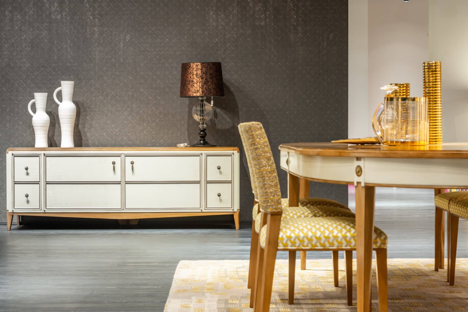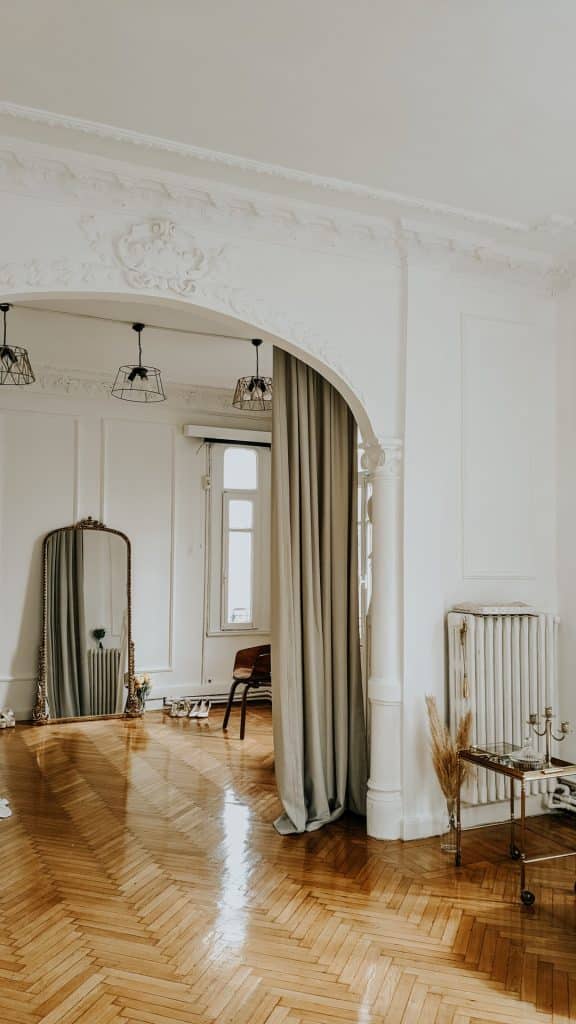 Namesto trendovskega lestenca lahko izberete lestenec s klasičnim pridihom, klasičen usnjen ali žameten ‘chesterfield’ kavč ali celo kakšen kos elegantnega starinskega pohištva iz orehovega lesa za dekoracijo.