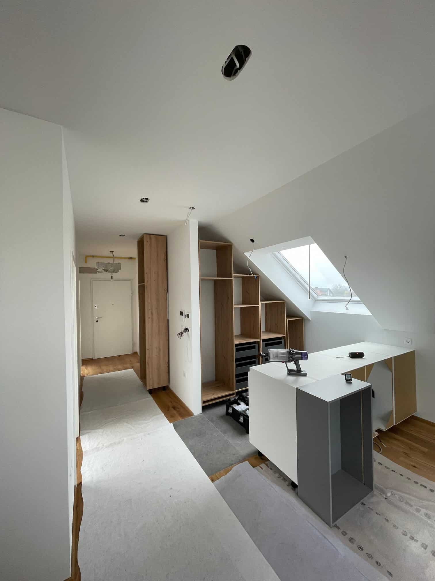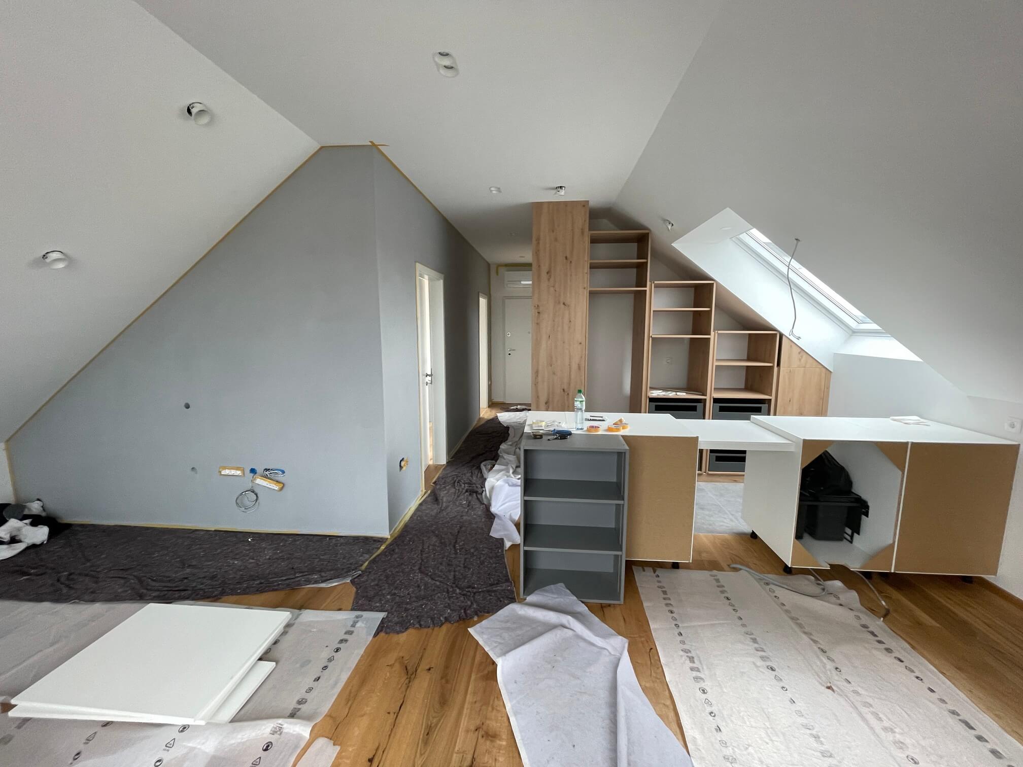 »Da lahko izberemo pravilen model in dimenzijo, je potrebno vedeti, kakšna bo namembnost prostora, višino vgradnje, naklon strehe in pa seveda konec koncev tudi, kako bo pohištvo razporejeno. V tem konkretnem primeru so uporabljena kar velika strešna okna, to pa zaradi tega, ker so kolenčni zidovi na določenih delih zelo nizki in se na ta način pridobi veliko stojne višine.«