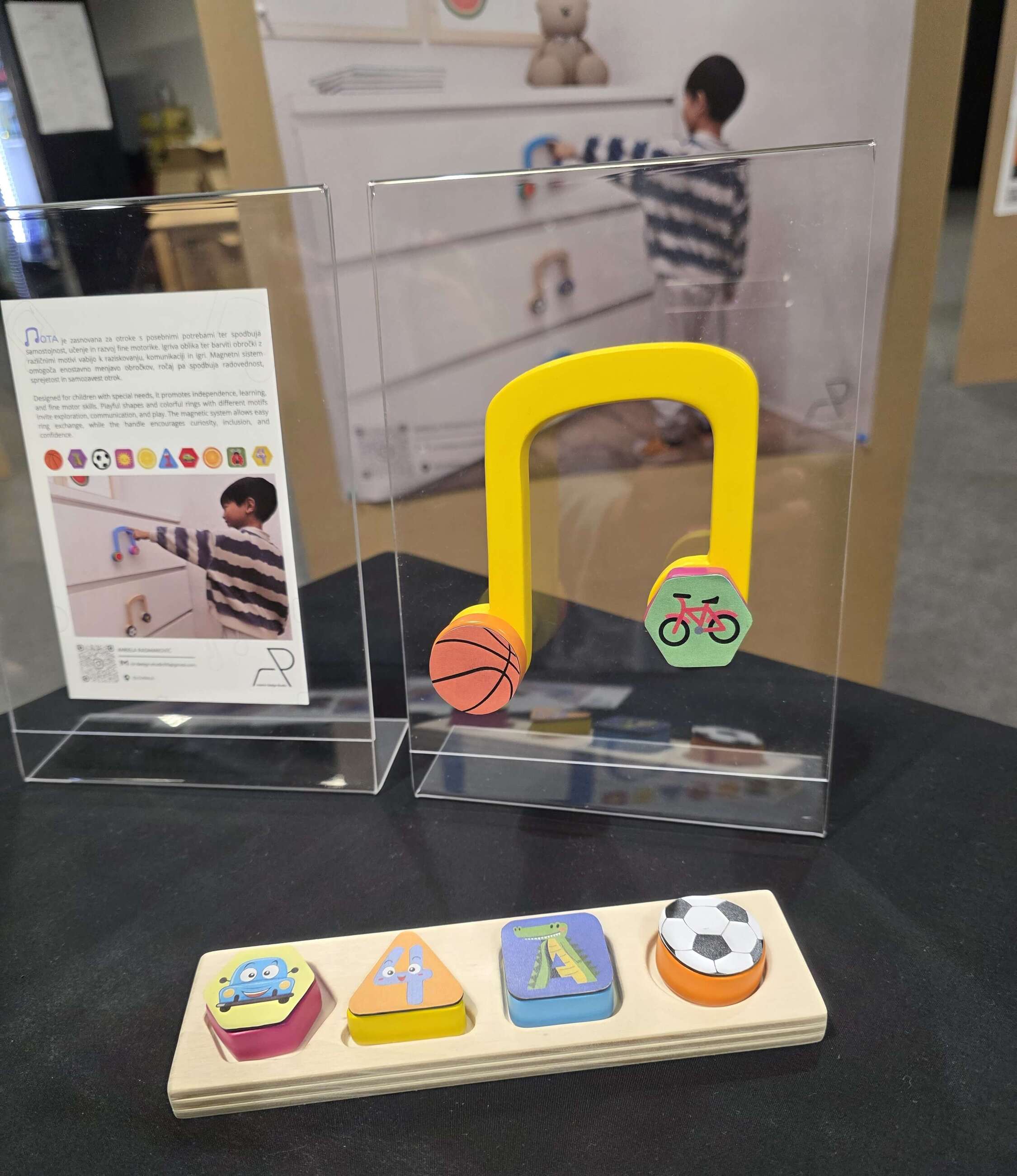 »Takrat sem ugotovila, da je področje klasičnih ročajev večinoma že raziskano, zato sem želela poiskati izziv, ki bi bil bolj smiseln in družbeno pomemben. Pri tem me je navdihnilo razmišljanje o otrocih s posebnimi potrebami, skupini, ki ji oblikovalci v sodobnem svetu pogosto namenimo premalo pozornosti, čeprav potrebujejo več podpore, razumevanja in prilagojenih rešitev.«
