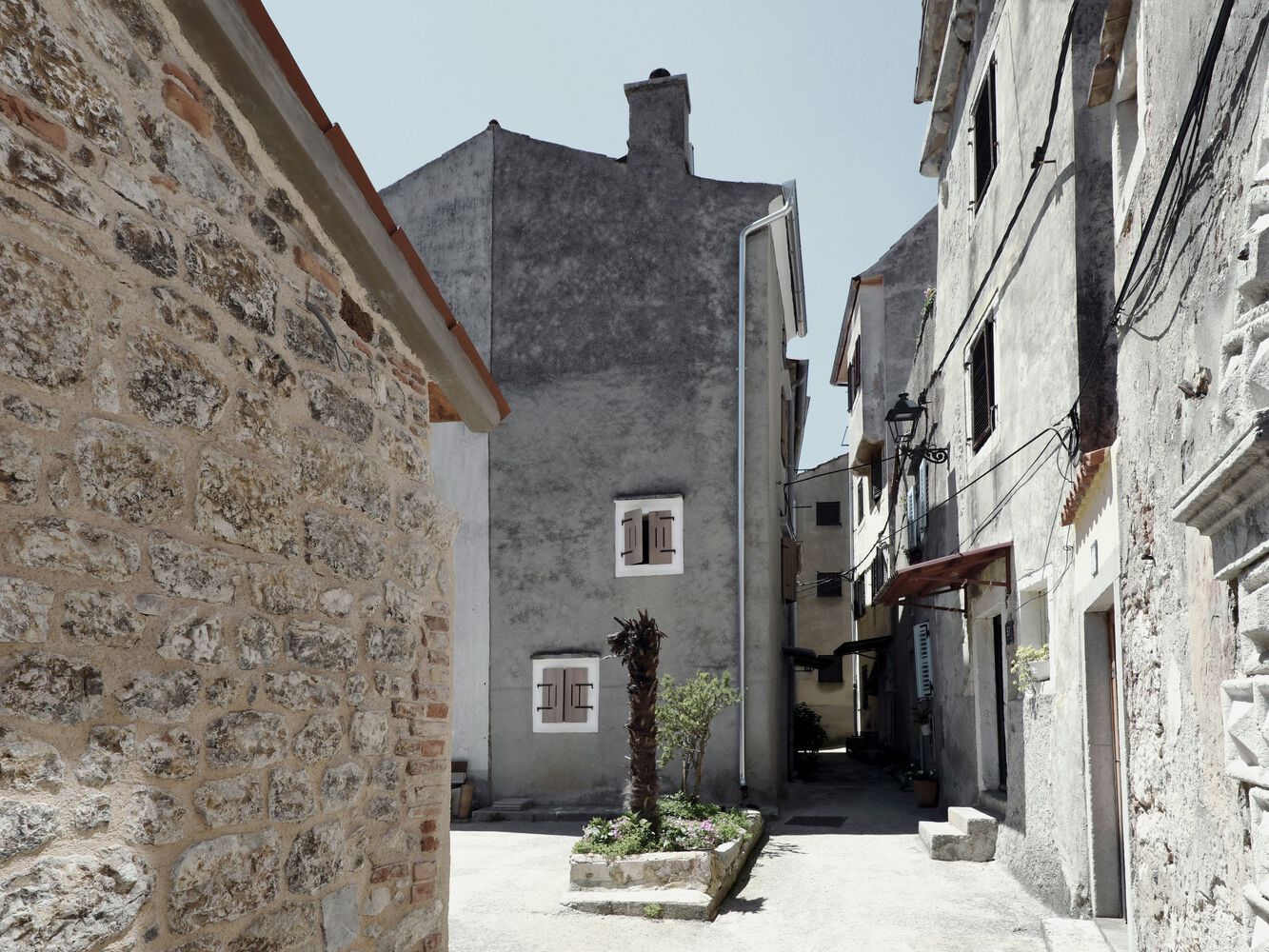 Na otokih, Cres pri tem ni izjema, pomemben vidik gradnje predstavlja razmislek o dostavi materiala. Prav zaradi izziva, ki ga ta predstavlja, morajo biti posegi v prostor še bolj premišljeni. Ne glede na kvadraturo. Površina etaže majhne kamnite hiše na vogalu trga, ki je bila predmet intervencije, namreč znaša le 9 m2 (3×3 m), razteza pa se v treh etažah.